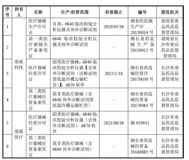 爱威科技:已取得6项经营证书