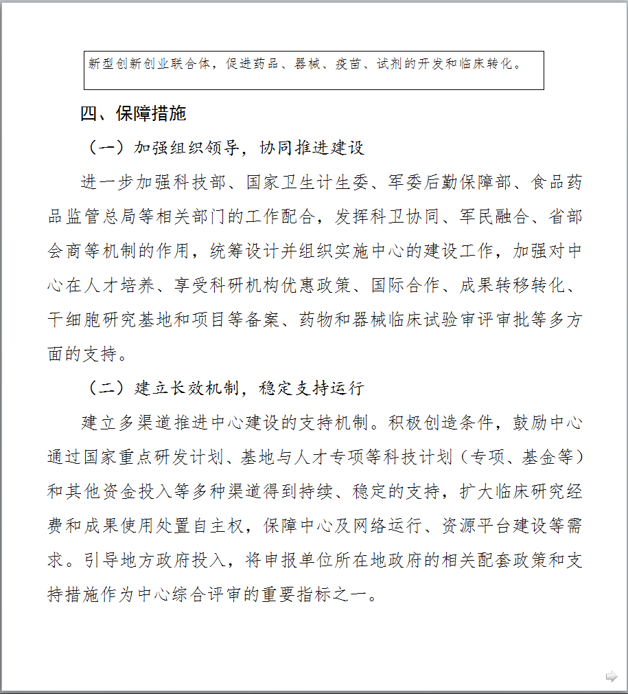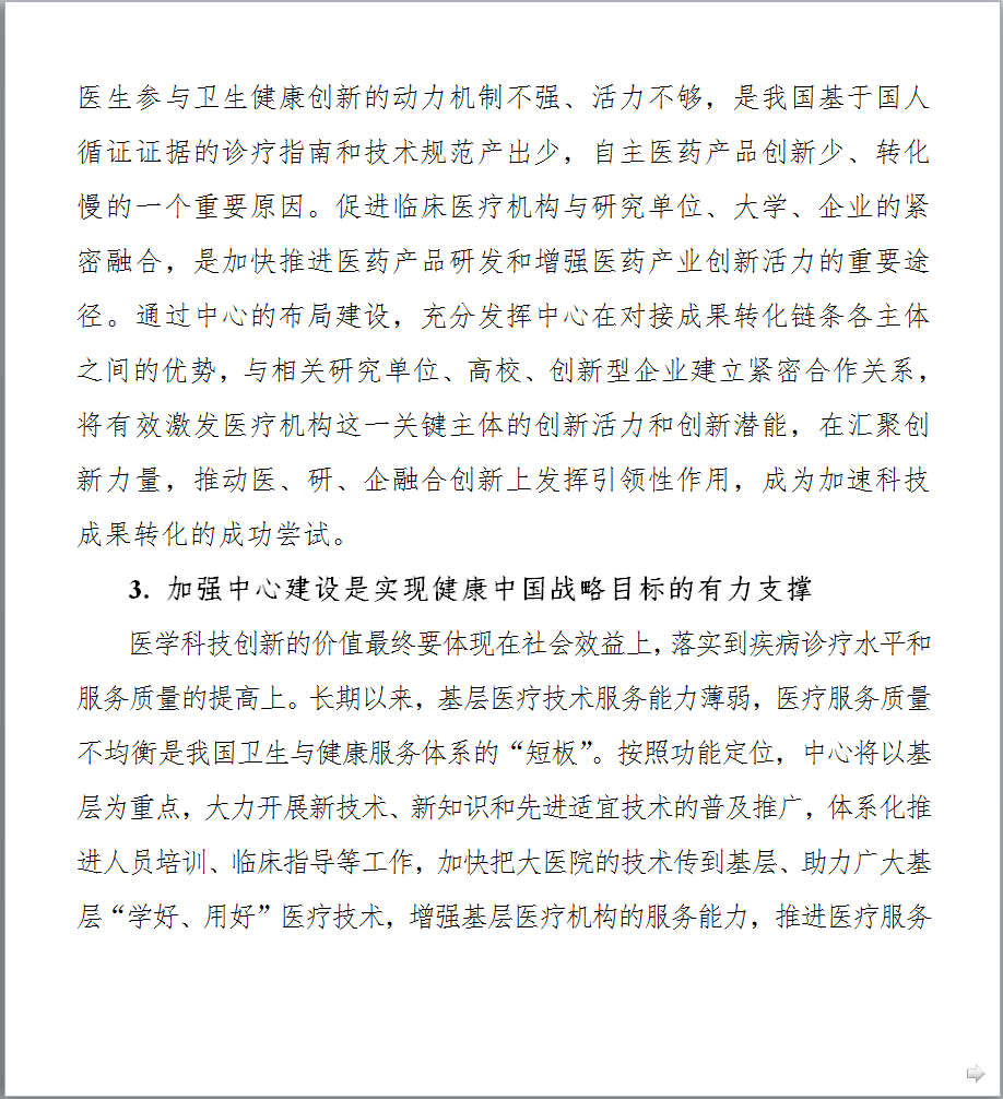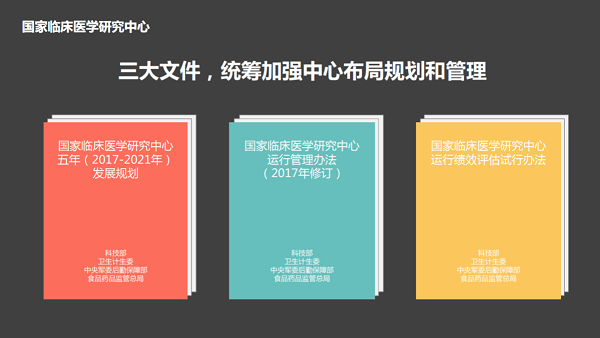 ![]() 图片来源:科技部官网 9月7日,科技部、国家卫生计生委、军委后勤保障部、食品药品监管总局联合印发了《国家临床医学研究中心五年(2017-2021年)发展规划》(以下简称“文件一”)、《国家临床医学研究中心管理办法(2017年修订)》和《国家临床医学研究中心运行绩效评估方案(试行)》3份文件。