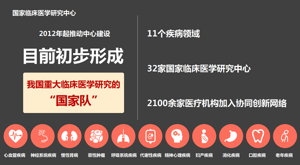 图片来源:科技部官网 长期以来,临床研究一直是我国医学科技发展的薄弱环节。为加强医学科技创新体系建设,打造一批临床医学和转化研究的“高地”,科技部会同原卫生部、原总后勤部卫生部于2012年启动了中心的建设工作。目前,分3个批次共布局建设了32家中心,形成了联合260个地级以上城市的2100余家医疗机构的协同创新网络;建成60余个大型生物样本库、数据库和143个临床研究队列,涉及60余个病种。