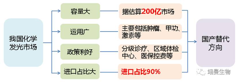 化学发光市场以30%的复合增长率成为中国IVD产业最火爆的细分领域,13亿多人口的中国也是全球化学发光最大的市场。随着存量市场的技术迭代和增量市场的增长,容量将进一步扩大;发光检测项目涉及多消费终端,覆盖范围广,抓地力强;分级诊疗和区域检验中心的政策利好国产发光行业;发光行业目前进口占比90%。