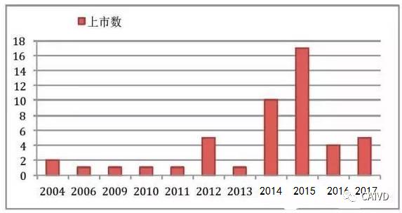 3.2.4 IVD产业受资本市场影响的新变革 近年来,体外诊断产业倍受资本市场青睐,从下图可以看出,相当数量的IVD企业密集在国内外资本市场上市,就2014年开始起有10家以体外诊断为主的企业上市获批。目前以IVD为主营业务的上市公司和新三板挂牌企业46家(见图2),其中2014年新上市公司数量远远高于往年体外诊断上市企业数量的2到3倍,2015年集中上市和新三板挂牌企业数量达到17家,创历史最高值。还有一些即将上市的企业仍在排队申报中。 图2:国内IVD上市企业和新三板挂牌企业年份和数量 全球IVD领域的另一特征就是频频收购兼并,国外体外诊断的巨头们购买技术、并购和战略联盟。而在我国,IVD领域也已经产生了多起并购,创新技术和资本联合,渠道、服务商和提供商联合,行业上下游链条逐渐打通。收购和兼并正在中国体外诊断市场上如火如荼进行着。如:在2015年,迪安诊断收购愽圣生物,进军优生遗传检测领域,联手阿里健康加快推进平台建设,2.64亿元收购北京执信55%股权;迪瑞医疗5.5 亿并购宁波瑞源;红杉资本领投美国加州的产前诊断公司Natera,欲和罗氏和Illumina等竞争[8]。 在行业集中度不断提高的大趋势下,上市公司利用资本市场的融资优势和杠杆优势,加快产业整合步伐。在资本市场的支持下,国内体外诊断产业格局正迎来新的变革。