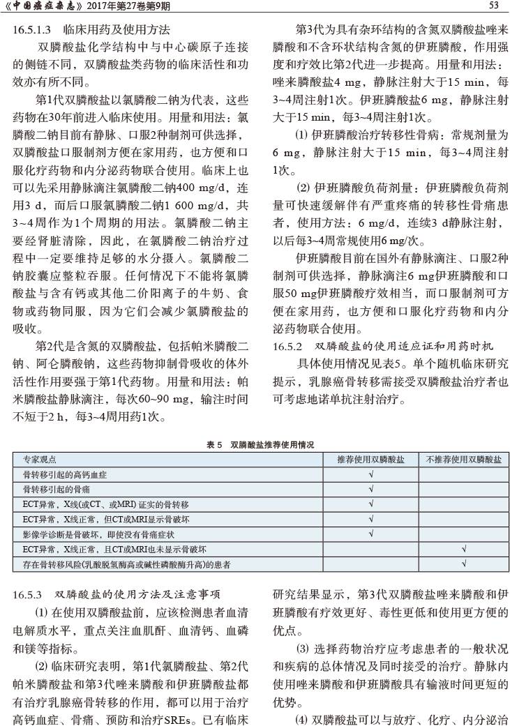 具体使用情况见表5。单个随机临床研究提示,乳腺癌骨转移需接受双膦酸盐治疗者也可考虑地诺单抗注射治疗。