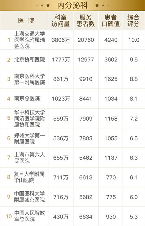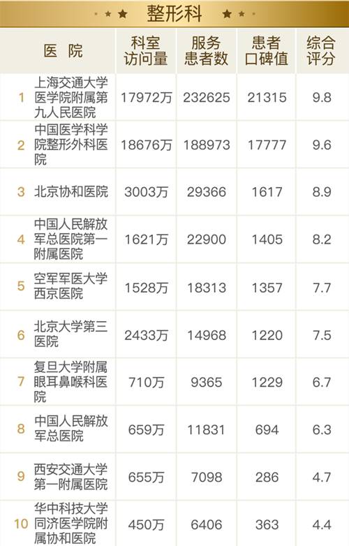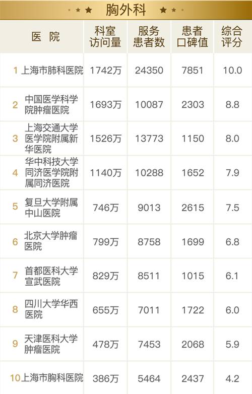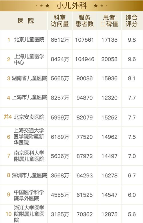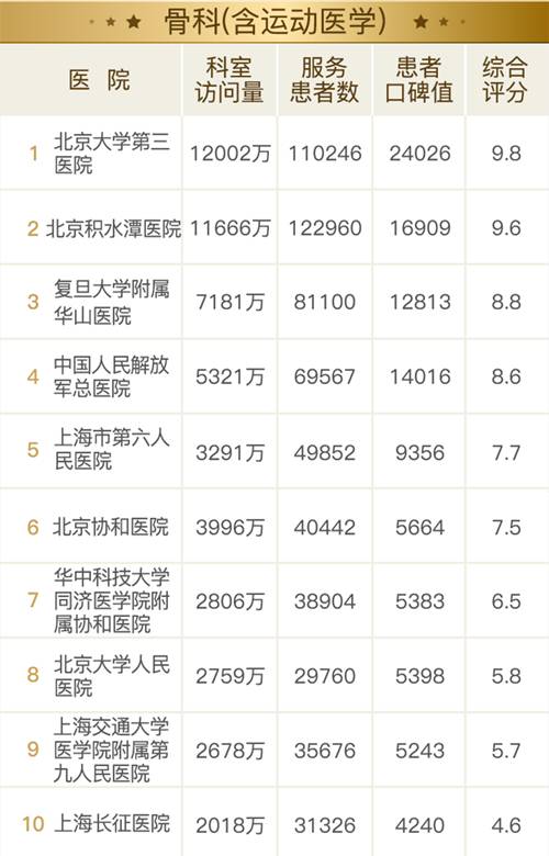 11 月 9 日,健康报移动健康研究院重磅发布“2017 全国医院互联网影响力排行榜之患者最信赖的科室”。这是全国首个通过追踪分析患者的互联网行为,得出的专科影响力榜单。通过分析主流互联网医疗平台的累计 248 亿次患者点击、1.6 亿次医患交流数据,客观还原了互联网时代患者就医选择的新趋势,绘制了一幅全新的医疗地图。 有别于学术型榜单,互联网影响力排行榜从患者角度出发,关注患者的选择及反馈。榜单涉及 26 个专科领域,好大夫在线为该榜单提供数据支持。 * 专科顺序按患者关注热度排列 *