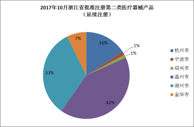 2017年10月,浙江省食品药品监督管理局共批准注册第二类医疗器械产品110个,其中首次注册28个,包括有源类6个,无源类11个,体外诊断试剂11个;延续注册82个,包括有源类2个,无源类5个,体外诊断试剂75个。