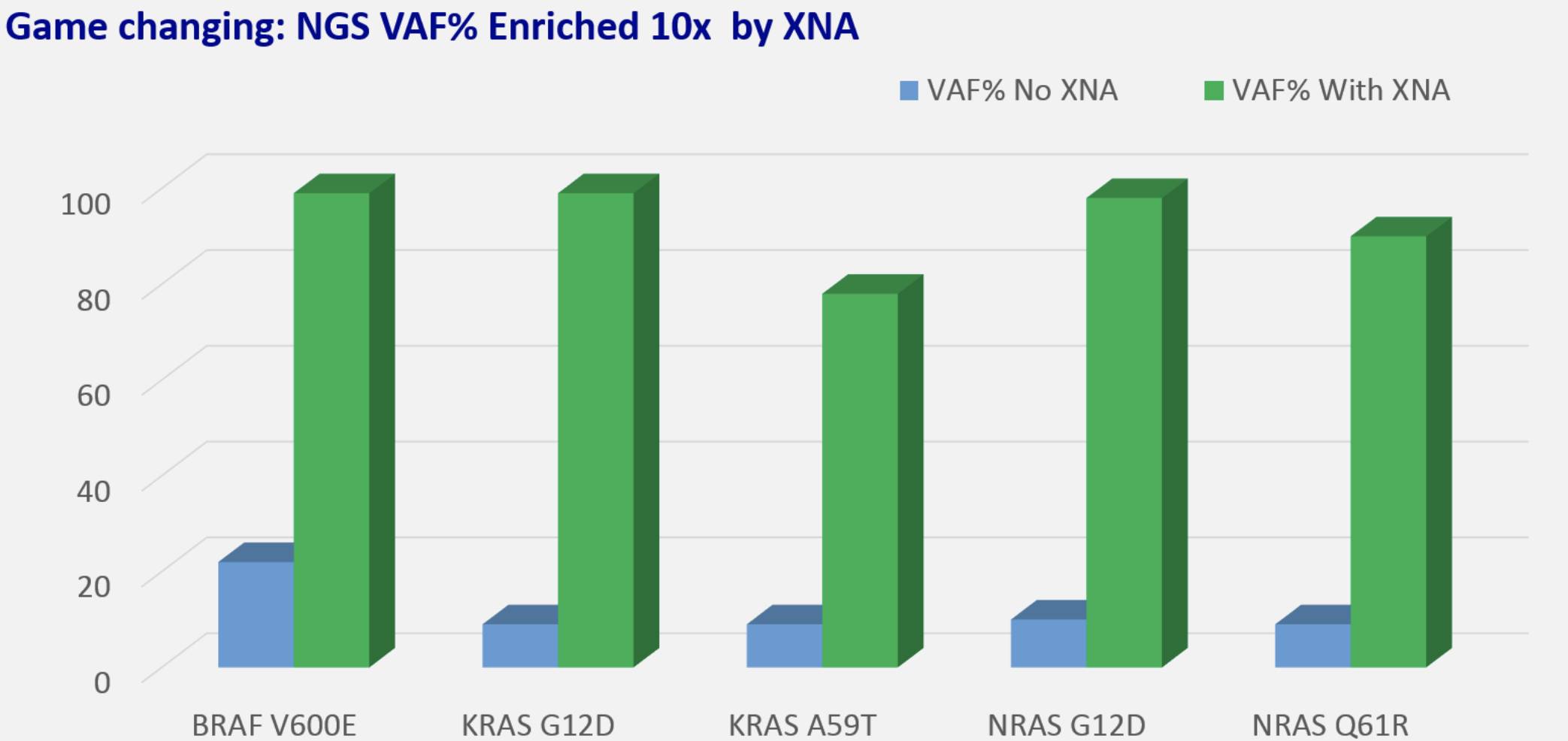 2017年11月20日,帝基生物(DiaCarta)宣布完成最新一轮融资,募集3亿元资金。本轮投资由FFC领投,投资方还包括GHC资金。帝基生物创始人及董事长张爱国博士表示,此次融资募集的资金将用于支持全球市场开拓、重大项目战略合作、新产品开发、FDA及CFDA申报。 在精准医疗崛起的今天,以循环肿瘤DNA(ctDNA)为基础的液体活检逐渐成为肿瘤诊疗的重要组成部分。在目前这种没有统一行业标准的情况下,时不时会有医生遇到这样的情况:同一肿瘤患者同一批外周血样本,送给两个不同的第三方检测机构检测,得到的检测结果却截然相反。 「前不久我们遇到一个脑癌转移患者,某第三方检测机构检测结果为阴性,没有有效的用药靶点。在患者病情恶化,家属开始准备后事之际,他们抱着一线希望寄了5毫升血到我们公司来。经过我们的努力,很快找出靶向基因突变,临床医生和我们的临床试验主任针对这些靶向,分析找到了对症的靶向药物,及时送到了病人手里。」张爱国博士说,「根据这个病人家属后来的信息可以看到,奇迹发生了,病人的积水和晚期肿瘤已经得到了明显的好转。 」 在张爱国博士看来,在血液游离DNA中找到跟肿瘤相关的ctDNA,犹如在一个干草堆里找绣花针,对检测技术要求极高。 他认为,基于NGS的液体活检技术都是把「草」和「针」一起放大,由于「草」在含量上本身就占优势,所以「草」被放大的机会更多。虽然我们的目的是想把「针」找出来,但是放大的过程中,「草」增加的更快,这样一来,实际上干扰越来越多。「这个问题不解决,不管你用什么测序方法,面临的问题都是一样的」,张爱国博士说。 为了解决这一问题,很多液体活检公司都开发了自己的ctDNA富集技术,但很少有企业能取得很大的突破,实现在提高准确度的同时,降低检测成本。去年,来自犹他大学和华盛顿大学的研究人员在《PLOS Genetics》(1)上发表文章称,相较于正常细胞的DNA片段,源自肿瘤的ctDNA似乎更短。如果这一现象被广泛证实,会给液体活检技术带来巨大的提升。 在2012年的时候,帝基生物想用自己手中的信号放大技术解决这个难题,但是他们很快发现,他们那时的技术也很难解决这个问题。 「恰好在那个时候,我们的首席科学家Michael J. Powell进公司了,当时我们也不知道应该用什么样的技术。后来我就跟Powell交流,说我们公司现在遇到了这个瓶颈,我也跟他说了『草』和『针』的困境。我问他,我们究竟如何才能抑制住『草』,可以单独把『针』放大。」张爱国博士说。 帝基生物的团队成员 Powell博士是一个非常有名的化学家,他在结构化学上面,尤其是PNA(肽核酸,是一种DNA类似物,PNA可以特异性地与DNA或RNA杂交,形成非常稳定的复合体)嵌合互补上有非常高的建树。Powell当时就建议利用核酸类似物嵌合正常的DNA片段,阻止其复制。但是当他们把市面上所有可以抑制的技术都尝试了,结果效果都不理想。 「既然市面上没有我们需要的东西,那我们就关起门来自己倒腾了。」张爱国博士说,「大概花了半年多的时间,终于找到了新的化合物,大概在2013年底我们推出了QClamp XNA技术。推出来以后,我们就开始做临床论证,后来发现XNA的确是个很好的东西。」 根据帝基生物提供的数据,使用QClamp XNA技术之后,基于NGS的等位基因中突变占的百分数(VAF%)最高可以提升十余倍(下面的数据是一家美国国际知名的测序试剂供应商对XNA验证的结果)。同时,由于XNA对正常DNA片段的抑制,液体活检的测序深度可以大幅降低。 「使用我们的技术之后,不仅大大提高灵敏度和特异性,同时成本也可以大幅降低,因此,我们的产品可以做到比市场价低得多,具有很高的性价比,使得精准医疗让普通大众都能承受的起。可以说这是个Game-changing的突破。」张爱国博士说。