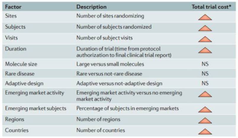 本期分享的主题是“智能临床试验管理系统”,这是小编我比较看好的领域之一。众所周知,药物或范医疗服务的开发,很大一部分的时间和经济成本需要花在临床试验阶段,且失败的风险也是极高的,所以提高此阶段的工作效率,增强风险控制,降低管理成本带给公司的利益是很显而易见的。 本文主要包含四个方面:(1)我国临床试验管理现状;(2)智能临床试验管理系统,智能在何处;(3)面临挑战;(4)项目分享。 临床试验主要分为前期准备、进行期间和结束实验三个阶段。 [1]由上图可知,试验开始前和结束期间主要是一些文书对接和行政工作,实际上真正的试验执行阶段还是在进行期间,这也是主要的人力物力财力成本之所在。通常临床试验执行阶段的成本包括:申办方和中间方行政管理成本,承办方执行人力成本,受试者招募成本,试验用药相关成本,受试者监护及副作用成本。这其中承办方执行成本和试验用药相关成本是相对固定的两个成本,在此我们不做分析。而对于申办方和中间方行政管理成本,受试者招募成本,受试者监护及副作用成本我认为是相对可变,具有一定的改善空间。 首先申办方和中间方的行政管理成本,申办方就是一些药企和研发机构,中间方就是一些临床试验外包管理公司。对于申办方而言需要在开始前与医院进行临床研究批件、证明性材料和临床试验相关材料的对接,在进行中也需要对公司下辖的多个进行中的临床试验进行统筹管理,结束时要对结果进行统计分析和总结,其实这个一般我们可以理解为是CRA临床试验监察员的职责所在(结果统计分析除外)。在这个过程中,大部分的工作现阶段还处于线下进行,且没有一个统一的平台,各家医院各自为政,增加了CRA许多的工作量。 所以这些对接和协商的过程若能从线下向线上转移,且构建一个区域甚至全国统一的平台将会很大程度上降低申办方的行政管理成本。对于中间方,尤其是CRC的工作比如受试者的在院情况反馈(CRF填写等),受试者的随访,与医生和CRA及时的三方沟通等这些工作的效率也必然会随着可穿戴设备和实时监测设备的普及而得到大大的提高,信息数据化更会加速大量的线下在院的繁琐工作转化为线上可控的简单任务。 在这个过程中,大部分的工作现阶段还处于线下进行,且没有一个统一的平台,各家医院各自为政,增加了CRA许多的工作量,所以这些对接和协商的过程若能从线下向线上转移,且构建一个区域甚至全国统一的平台将会很大程度上降低申办方的行政管理成本。 对于中间方,尤其是CRC的工作比如受试者的在院情况反馈(CRF填写等),受试者的随访,与医生和CRA及时的三方沟通等这些工作的效率也必然会随着可穿戴设备和实时监测设备的普及而得到大大的提高,信息数据化更会加速大量的线下在院的繁琐工作转化为线上可控的简单任务。 关于受试者的招募方式,小编了解到主要有以下三种:院内招募(医生推荐)、院外招募(广告或自身人脉关系)、数据库筛选。其中院内招募为现阶段我国受试者招募的主要途径,此种途径不仅效率低下,且覆盖面较窄。随着电子病历的逐渐普及,日后各医院间的数据共享深度和广度也将逐渐提高,那么这种传统依靠医生推荐为主要途径的局限性将愈发显著,患者数据库的建立和更新,并在其中根据要求找寻相应的受试者这种新的途径必将大大缩短受试者招募的过程。 对于受试者监护及副作用成本,我认为现阶段虽然对于一些重大疾病的创新疗法还是应该以住院观察为主,尤其是免疫疗法之类的风险较大,容易发生意外。但对于一些慢性病来说,短期内的观察效果不明显,可以使用现在越来越便携的实时监测设备,且数据可以自动上传网络,医生和CRA可以随时在自己的手机端即可获知受试者的状况,省去了录入回访这样的耗时繁琐的事务,且通过实时的监控代替不连续时间点的监测,可以更好的对不良事件的发生做出预测和提醒,防患于未然,避免造成申办方不必要的损失。所以处在信息化、大数据、人工智能的风口浪尖,智能、可靠、安全的临床试验管理系统的普及,必将是这个细分领域的未来趋势。 现在很多的临床试验已采用临床试验远程电子数据采集系统(EDC),小编在这里说的智能临床试验管理系统其实就可以理解为是一种更加智能,且集成功能更多的EDC系统。 现在很多的临床试验已采用临床试验远程电子数据采集系统(EDC),小编在这里说的智能临床试验管理系统其实就可以理解为是一种更加智能,且集成功能更多的EDC系统。 (1)智能费用预算 目前,随着国家政策和法规的不断地完善,中国的医疗水平日益发达,许多跨国医药企业纷纷在中国建立研发中心,整个CRO和SMO市场日见繁荣,新药临床试验质量和相应的研究成本也越来越高。因此,在保证新药临床试验顺利开展的前提下,如何切实有效地进行成本费用预算,就成为项目计划的一项核心内容。而一份合理的费用预算,离不开对整个临床试验设计的通盘考虑,因为不论是临床试验的目的,还是设计原则或者设计要点,都会对整个项目预算产生影响,进而影响到临床试验的实施、进度和质量。[2] 下图显示临床研究费用主要影响因素 [3]备注:红色三角代表有显著统计差异变量 小编认为智能预算系统应包括自动计算、自动抓取与预测缺失数据、高风险变量提示等。自动计算就是输入一些基础的数据,