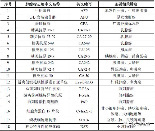 (2)常见肿瘤标志物 (3)肿瘤标志物检测的必要性