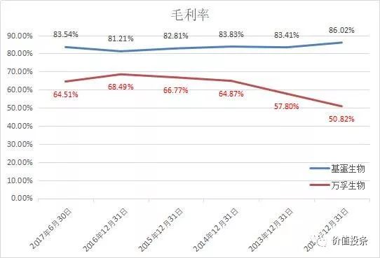 提起基蛋生物,不熟悉的朋友可能会一脸懵。 生产高蛋白基的连锁养殖场吗?生产有鸡蛋的专家? NO.....统统都不是。 略显滑稽的名字,基蛋生物令人印象深刻啊! 言归正传,今天介绍的这枚“基蛋”不是普通的鸡蛋,基蛋生物的国内POCT龙头企业,并伴随着近年来POCT市场的迅猛发展而独霸一方。公司产品覆盖心血管、炎症疾病诊断等,其中核心业务心脏标志物技术领先全国。 很强悍吧! 事情从2017年夏天说起,2017年7月17日,基蛋生物科技股份有限公司成功登陆A股主板市场,一上市,基蛋生物就备受关注,公司综合毛利率超80%,秒杀大批A股铁公鸡,其多年来的高增长表现更是被部分机构寄予厚望。 1:基蛋生物的对手都有谁? 既然能成为龙头企业,没有两把刷子是不行的,那么旗鼓相当的对手在哪?来看一下同行业内去年销量的情况吧;南京基蛋生物(已上市,2016年销售额近4亿元)、深圳瑞莱生物(润达并购,2016年销售额1.39亿元)、广州万孚生物(已上市,2016年销售额5亿多)、武汉明德生物(上市转板中,2016年总销售额1.5亿元)、北京热景生物(2016年销售额超过1亿)、深圳微点生物(新三板上市,2016年销售额近1亿) 乍一看,还真不少,但仔细分析下,最大的分别是基蛋、万孚、明德这三家,广州万孚生物抢得上市先机,目前看排名第一,基蛋生物今年新上市,销量也是杠杠的。 光说还不行,得有图有真相,那我们就从毛利率、净利率、研发投入占比三个点来对比一下(明德生物未上市暂不对比)。 毛利率对比