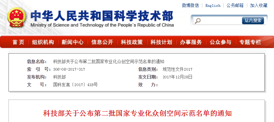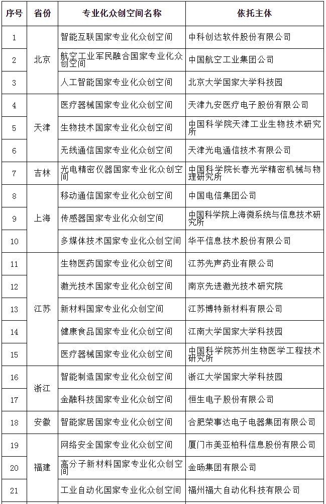 医疗器械在内!第二批国家专业化众创空间示范名单揭晓!