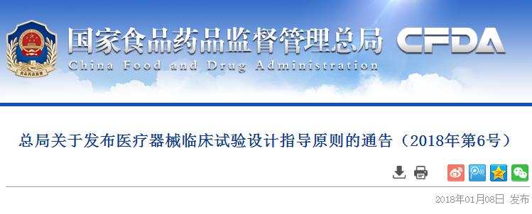 为贯彻落实中共中央办公厅、国务院办公厅《关于深化审评审批制度改革鼓励药品医疗器械创新的意见》(厅字〔2017〕42号),加强医疗器械产品注册工作的管理,进一步提高注册审查质量,鼓励医疗器械研发创新,国家食品药品监督管理总局组织制定了医疗器械临床试验设计指导原则(见附件),现予发布。