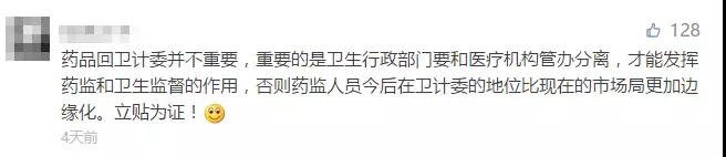 最新,有消息传出:食药总局也有可能不拆分了! 总局被拆分? 不一定 “两会”前,食药监管体制的走向,就成为业界热议的话题。不少媒体纷纷报道,2018年,食药监管体制或将迎来新一轮改革。各种猜测在业内、外流传,风行一时。 待到大会开始,全体通过《中共中央关于深化党和国家机构改革的决定》后,其中关于“深化行政执法体制改革”的内容,更引来诸多关于食药监总局,下一步走向的解读。 言之确凿者有之、含糊其辞者也有,近期大体上有“工商、质监、食药总局的食品职能组建市场监管总局;卫计委、民政部的相关职能以及食药总局的药械职能组建卫生保健部”这两个版本。推测都指向一个结果:总局有变。 但刚刚,一位接近总局的人士透露:这事儿还不一定,总局有可能不分。 证据强有力 自各路文章将总局拆分的推测,抛给公众后,引发的讨论呈现鲜明的倾向——有期待改变: ![]() 有担忧药监被边缘化: ![]() 也有不同的见解: ![]() 推测拆分的论据很多,但实际上,从食品药品关系国计民生,最高层近年来通过一系列措施,不断强化食品药品监督管理的角度来看,市场监管总局会成立,但食药监部门并不一定会被拆分。 更有力的证据是:3月5日上午的政府工作报告中,将食品药品放在了实施健康中国部分,而不是放在市场监管部分,这说明食品药品监管是公共安全体系的一部分、是健康中国战略的一部分、是公共服务管理的一部分。 真可谓众说纷纭…… 影响深远,3月13日正式揭晓 至于最终的机构改革方案,等到3月13日答案就揭晓了。 3月4日,十三届全国人大一次会议新闻发布会上,大会发言人张业遂表示,将在3月13日的第四次全体会议上,听取国务院关于国务院机构改革的说明。 机构改革,对系统内的人来说,影响重大。对于药企、药商,以及百万从业人员来说,意义一样深远。监管队伍和体系、过一致性评价的时间、药品审批审评程序、法律法规的出台等等方面,有些肯定不会变,也会有调整的方面。 好吧,目前,无论是哪种推演的结果,都只是猜测。那就静等下周二,一锤定音的时候吧! |