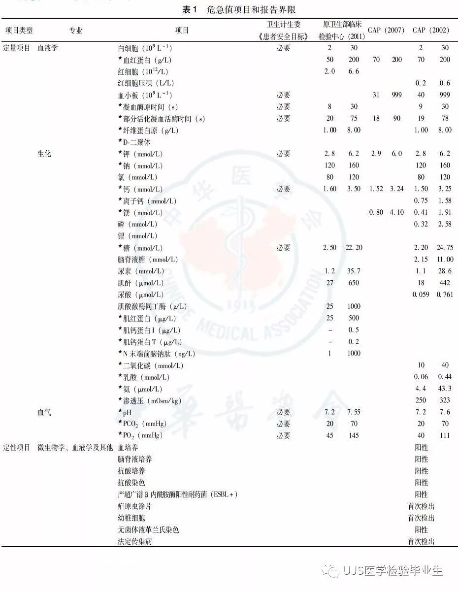 中华急诊医学杂志2013年10月第22卷第10期 检验危急值在急危重病临床应用的专家共识组 美国临床实验室修正法案(CLIA’ 88)、美国医疗机构认可联合委员会(JCAHO)、美国病理家协会(CAP)、国际标准化组织ISO 15189:2007、患者安全目标(NPSG)均要求临床实验室建立规范化的危急值报告制度,尽管危急值报告已有40年历史,但由于检测系统、方法学、临床认知及临床能力的差异,危急值报告程序及步骤一直未能实现标准化。如何选择危急值项目及其界限、如何处置危急值将直接影响到患者的安全。因此,提高对危急值的认识,并规范其临床应用,对于保障患者生命安全具有非常重要的意义。 1、危急值的定义 1972年危急值(critical value ,panic value)由Lundberg首次提出,现已被世界各地所采用。本共识将其定义为: (1)危及生命的极度异常的检验结果,说明患者可能正处于有生命危险的边缘状态,如果不给予及时有效治疗,病人将处于危险的状态,或者立即给予治疗可明显改善预后。一旦出现这样的检验结果,应立刻报告给临床医师,提醒其立刻采取相应的治疗措施;否则将会因为错过最佳的治疗时机而使患者的生命安全受到威胁; (2)国家重大传染病,反映那些需要引起我们足够重视的患者的检验结果,如H7N9等。 2、危急值的适用范围 (1)危急值可包含检验科、放射科、病理科、心电图等部门的危急值报告,本共识仅限检验科的危急值项目; (2)儿童危急值界限应该比成人的界限更窄,以更好地检测出可能的危急值,本共识未涉及,仅限定为成年人; (3)本共识可供医疗机构急危重患者发生危急值的临床应用。 3、危急值的管理要求 国内外相关法规对危急值报告提出了明确的要求。美国临床实验室改进修正案明确要求临床实验室必须报告危急值,并要求在质量体系文件中阐述危急值概念及危急值结果的报告程序。美国病理学家协会的实验室认可计划、国际标准化组织ISO15189均将规范的危急值报告列入认可要求。2004年,WHO开始组建患者安全国际联盟(WAPS),以促进患者安全,加快患者安全政策的制定和实施,并由相关委员会专门负责危急值报告政策的研究。之后美国医疗机构认可联合委员会开始实施患者安全目标,2005年,JCAHO发布指南,实验室危急值报告成为美国国家患者安全目标的一部分,危急值报告为其中最受关注的目标。此后,欧洲、亚洲及其他国家的卫生行政部门均针对危急值报告出台相关政策,危急值报告已作为各国卫生行政部门评价医院的重要指标。 上个世纪90年代,危急值概念进入中国。经过近十多年的发展,自2007年起,国家卫生计生委(原名:卫生部)将危急值报告列入患者安全目标,要求各级医疗机构根据其实际情况,制定适合本单位的危急值项目和危急值报告制度,对危急值报告项目实行严格质量控制并能提供咨询服务。卫生计生委等级医院评审标准实施细则(2011版)亦对危急值报告提出明确要求,危急值管理在中国已成为重要的医院评价指标,越来越多的受到各级医院的重视。 4、危急值项目的选择及危急值界限的确定 并非所有的检验项目都需要设立危急值,在制定这个项目表时应把确实有意义的试验包括进来,而不能把没有危急值意义的试验包括进来。项目太多反而容易降低临床对这些数值意义的认识和警惕性,同时也增加了实验室的工作量。不同性质的医院,应根据其工作特点选择相应的检验危急值。 4.1 危急值项目的选择 不同的实验室间纳入的危急值项目差异很大。CAP对美国623家医疗机构危急值报告的监测显示,常规化学和临床血液学危急值项目范围变化最大。1997年,美国临床病理学学会 ASCP管理委员会发布了“危急值实用参数”,列出了常用危急值报告项目。国外许多医疗机构网站上的危急值报告体系,均可作为危急值项目选择时的参考。我国卫生计生委在患者安全目标中明确要求,须将“血钙、血钾、血糖、血气、白细胞计数、血小板计数、凝血酶原时间、活化部分凝血活酶时间”列为危急值项目。 危急值的项目的确定应该由医院行政管理部门组织相关科室协商确定,一般情况下,危急值项目的选择可由实验室主任列出“可能危急值项目目录”,然后由临床科室、检验科、护理部、医院行政管理部门等人员共同论证确定, “可能危急值项目目录”制订时,应首先考虑“其结果严重偏离可提示患者生命处于危险状态”的检验项目,这些检验项目多是“结果异常是疾病发生发展的直接原因”,如钾、钠、钙、血小板、白细胞、血培养、脑脊液微生物检查、血药浓度等。有些检验结果的异常偏离是疾病转归的结果或表现而非原因,如淀粉酶、糖、肌酸激酶同工酶、肌钙蛋白I、肌红蛋白、尿素氮、肌酐、血气等,其亦能提示患者的生命处于危险状态,这些检验项目亦应列入危急值项目。和疾病的治疗转归有紧密联系的检验项目以及国家重大传染病,那些需要引起我们足够重视的检验结果,如H7N9等也可列入危急值项目。 基于以上阐述,对危急值项目选择共识如下: (1)凡是满足“结果的异常偏离可提示患者生命处于危险状态”这一条件的检验项目均可选择为危急值报告项目; (2)以卫生部临床检验中心组织的全国性的现况调查为基础,建立危急值项目; (3)公开发表的文献、资料等中推荐的危急值项目; (4)患者安全目标要求开展的危急值项目; (5)根据具体医院临床科室的