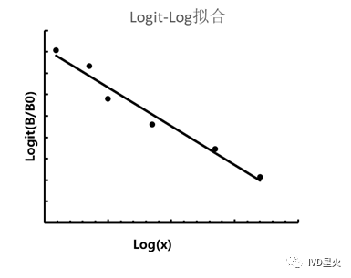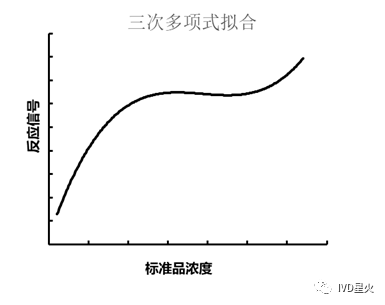 可以通过增加多个校准数据点的方法来使线性插值就更精确。线性插值法通常适用于线性范围宽且校准点足够多的情况,或者用于标准曲线的校准。 2. 样条插值法(Spline interpolation): 样条插值法是一种以可变样条来作出一条经过一系列点的光滑曲线的数学方法,是一种改进的分段插值。 插值样条是由一些多项式组成的,每一个多项式都是由相邻的两个数据点决定的,这样,任意的两个相邻的多项式以及它们的导数在连接点处都是连续的。当希望曲线密切遵循单个的校准物数据点时使用,此时要求数据非常精密,需要有多个浓度校准物。在校准数据点越多时,其拟合的效果也和实际结果越吻合。该方法计算较为复杂,在大型自动化的分析仪器中通常使用该方法处理和分析数据。 线性差值和样条插值的比较 最常用的样条插值法是:三次样条插值(Cubic Spline Interpolation),简称Spline插值,是一段一段的三次多项式拼合而成的曲线,数学上通过求解三弯矩方程组得出曲线函数组的过程。 样条插值(图片来源于网络) 二、曲线拟合或回归 拟合曲线及相应数学公式表明标准品浓度与测定信号值之间的比例关系。常见的拟合曲线有指数曲线拟合、对数曲线拟合、双曲线模式、多项式模式、Logit-Log转换、Logistic公式等。 1. 双曲线拟合 当浓度范围不是很宽时,竞争法的反应能很好的使用双曲线公式拟合。 双曲线公式:y=a +b(1/x) 2. 对数拟合 对数拟合公式如下: y=a +blgx 由此可以产生以下两种拟合: Log-Log拟合:将反应值和对应的浓度值均取对数,然后再进行直线回归,方程式为:lg(y) = a lg(x) + b ,该转换可用于夹心法。该方法不能有零浓度值校准点。 Logit-Log拟合:Logit 变换源于数学中的 Logistic 曲线,这个模型一般适用于竞争法的拟合。令Y=Logit(B/B0),X=logx,进行最小平方回归可得到良好的拟合曲线,如下图。该拟合需要有一个零浓度测试的反应值。 3. 多项式拟合 N次多项式方程: 在标准曲线拟合时最常用的是三次多项式,y = a + b*x + c*x^2 + d*x^3,在测试实验结果刚好在曲线的单调递升或者递减段的时候,能很好的拟合竞争法和夹心法的曲线。但是当测试结果的曲线趋近于直线时,往往不能很好的拟合。 4. Logistic拟合 一般Logistic拟合较为复杂,免疫学反应常采用四参数拟合,四参数数学模型如下所示: a:曲线上渐近线估值,即反应最大值 d:曲线下渐近线估值,即反应的本底 b:曲线拐点处的斜率 c:最大结合一半时对应的剂量,即拐点 它的曲线单调上升(或下降),其形状根据数据点的情况可能是一条S型曲线,或者S型曲线的某一段。因此,很多情况下都能很好的拟合免疫学反应标准曲线,同时适用于竞争法和夹心法。 四参数公式具体算法实现基于高斯牛顿迭代法:其基本思想是使用泰勒级数展开式去近似地代替非线性回归模型,然后通过多次迭代,多次修正回归系数,使回归系数不断逼近非线性回归模型的最佳回归系数,最后使原模型的残差平方和达到最小。 实际使用过程中,可以固定a值和d值,这样只需拟合两个参数。 标准曲线拟合和绘制软件推荐 1. ELISA Calc软件:简单的拟合计算程序