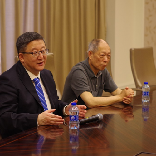 品生医学首席医学官郭欣(左)、福建省立医院副院长浦晓东(右)接受记者采访