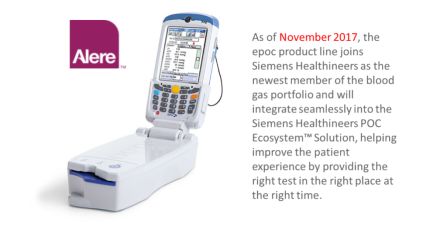 5.西门子(Siemens) 西门子在IVD领域拥有最齐全的产品线,包括免疫、生化、分子、血球、血凝、POCT等,致力于在诊断领域提供最完整的解决方案。西门子检验的发展史就是一部不断扩充产品线的并购史。 与其他产品一样,西门子的血气产品来自于收购公司拜耳诊断。最新的EPOC来自于美艾利尔。 秉承其一贯大而全的风格,在收购了EPOC之后,西门子在血气这个细分领域内,再一次成为产品线最为齐全的玩家。覆盖了血气产品全部的技术流派: