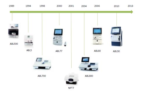 Poul Astrup教授,丹麦传染病医院化学实验室的负责人,经过研究发现,可利用特殊的电极来测量PH,并通过换算来测定血液中的二氧化碳分压。从而极大的提高了血液PH和二氧化碳分压的检测速度。在此生死存亡时刻,当时从事无线电技术的雷度公司挺身而出,与Astrup教授合作研发,并于1954年推出全球第一台PH分析仪即Astrup Apparatus E50101,从而挽救了成千上万患者的生命。到1959年,推出了第一台检测PH、pO2、pCO2的分析仪,从此,雷度与血气分析紧密的结合在了一起。而Astrup教授,也被后人尊为血气之父。
