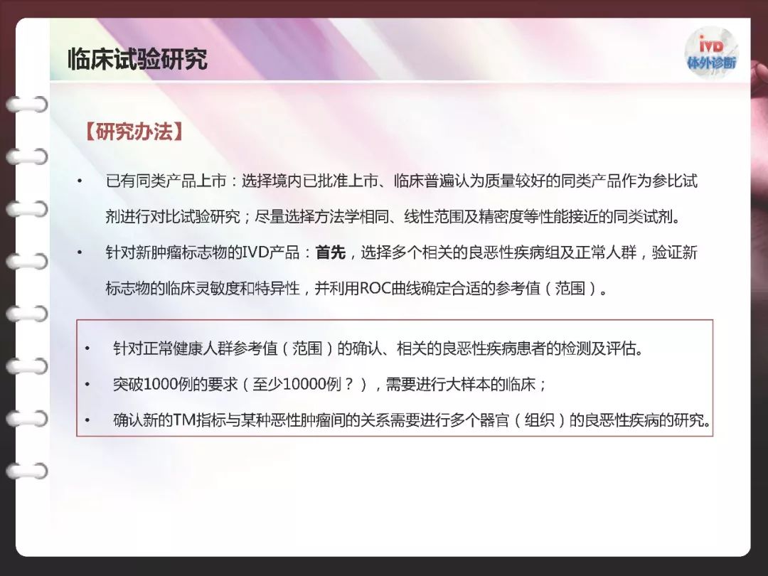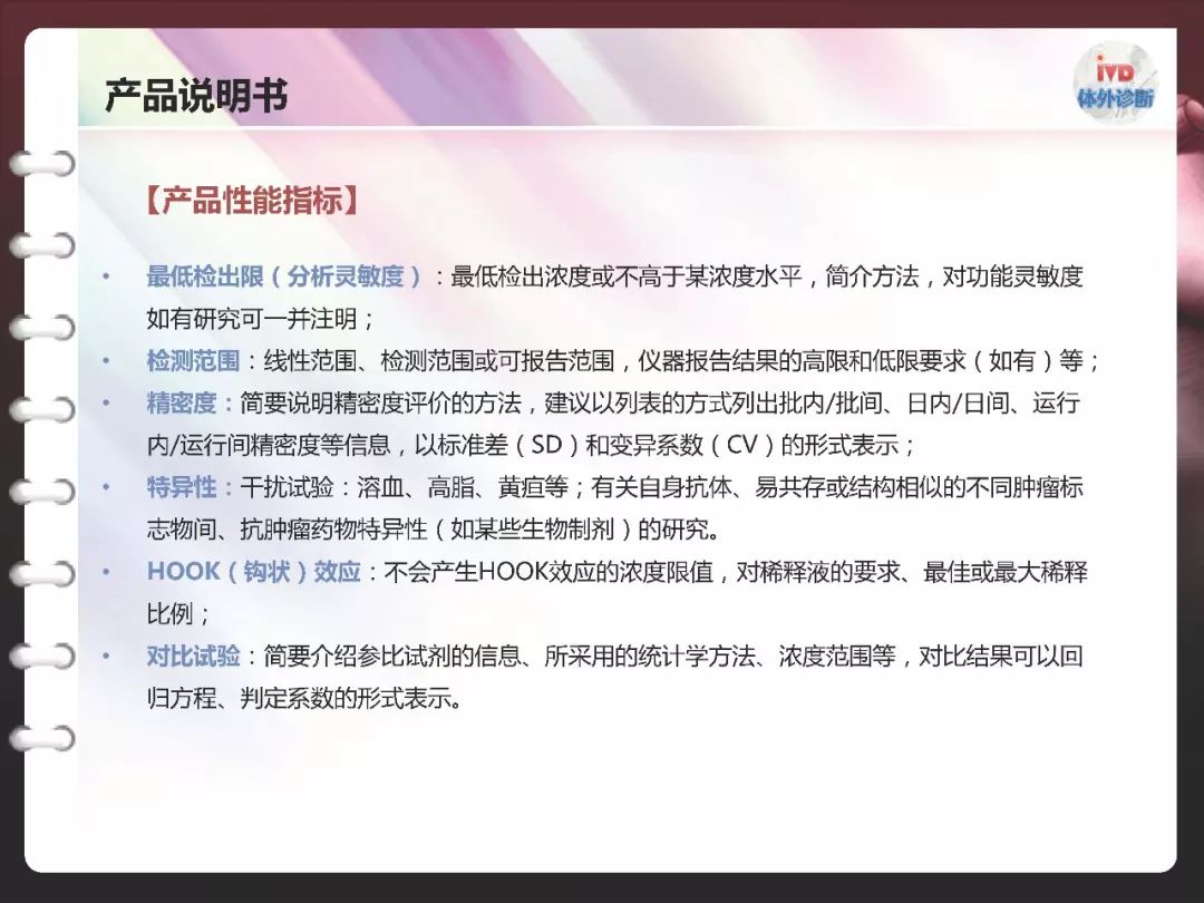 本指导原则旨在指导注册申请人对肿瘤标志物类定量检测试剂注册申报资料的准备及撰写,同时也为技术审评部门对注册申报资料的技术审评提供参考。 本指导原则是对肿瘤标志物类定量检测试剂的一般要求,申请人应依据具体产品的特性对注册申报资料的内容进行充实和细化,并依据产品特性确定其中的具体内容是否适用。 本指导原则是对申请人和审查人员的指导性文件,但不包括注册审批所涉及的行政事项,亦不作为法规强制执行,如果有能够满足相关法规要求的其他方法,也可以采用,但需要提供详细的研究资料和验证资料。应在遵循相关法规的前提下使用本指导原则。 本指导原则是在现行法规和标准体系以及当前认知水平下制定的,随着法规和标准的不断完善,以及科学技术的不断发展,本指导原则相关内容也将进行适时调整。 肿瘤标志物类定量检测试剂是指利用各种方法学对人血清、血浆或其他体液中的肿瘤标志物进行体外定量分析的试剂。本指导原则适用于进行首次注册申报和相关许可事项变更的产品。 从方法学考虑,本文主要指利用基于抗原抗体反应原理的免疫学方法对肿瘤标志物进行定量检测的体外诊断试剂,如酶免疫法、化学发光法或微粒子酶免法等(不限于上述方法学),而不包括组织受体检测、生物化学方法、免疫组化染色法、分子生物学方法类检测试剂,有利之处可参考执行。 |