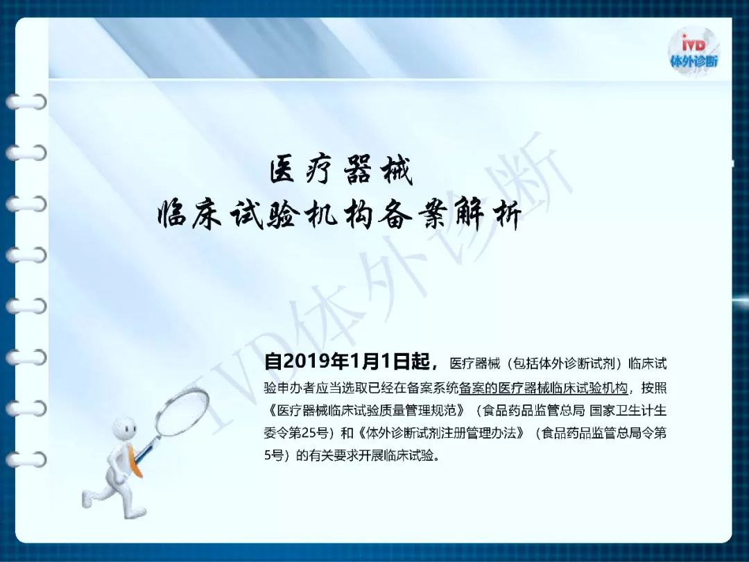 为了保证临床试验工作的持续开展,自2018年1月1日至2018年12月31日,医疗器械临床试验申办者可以继续选择经食品药品监管总局会同国家卫生计生委认定的药物临床试验机构开展临床试验。其中,体外诊断试剂临床试验申办者还可以继续按照《食品药品监管总局关于实施〈医疗器械注册管理办法〉和〈体外诊断试剂注册管理办法〉有关事项的通知》(食药监械管〔2014〕144号)中的有关规定,选择省级卫生医疗机构开展临床试验;对于特殊使用目的体外诊断试剂,可以在符合要求的市级以上的疾病预防控制中心、专科医院或检验检疫所、戒毒中心等机构开展临床试验。 自2019年1月1日起,医疗器械(包括体外诊断试剂)临床试验申办者应当选取已经在备案系统备案的医疗器械临床试验机构,按照《医疗器械临床试验质量管理规范》(食品药品监管总局 国家卫生计生委令第25号)和《体外诊断试剂注册管理办法》(食品药品监管总局令第5号)的有关要求开展临床试验。 |