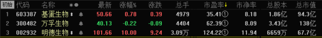 市盈率简单地讲,就是股票的每股市价与股票的每股盈利(或称每股税后利润)的比率。 市盈率反映了在每股盈利不变的情况下,当派息率为100%时及所得股息没有进行再投资的条件下,经过多少年我们的投资可以全部收回。例如:某股票的股价是24元,每股年净盈利为0.60元,则该股票的市盈率为24/0.6=40,也就是如果这家企业每股盈利不变的情况下,我们的投资40年可以回本。 市盈率分为静态市盈率与动态市盈率。静态市盈率基本反应的是企业当下的情况,动态市盈率更多的是反应企业未来的盈利能力和情况。二者具体的计算公式由于比较复杂今天在这里就暂不和大家交流了。 所以要选择是否购买一只股票就要尽量选择市盈率(动态和静态)比较低的股票,同时还要参考该股票同行业同类型上市企业的平均市盈率水平如何。 截止2018年7月27日中午11点半收市时的万孚、基蛋、明德三家市盈率股价表 明德生物在近期股市上的表现可谓是一路飘红,但却面临着市盈率过高(超过124了)的风险,虽然企业未来前景看好,但是对于普通投资者来说此时落袋为安可能是更好的选择。对于万孚和基蛋来说,相比较今年一二月份的股价还略高,不过已经进入到可逐步建仓的时期! |