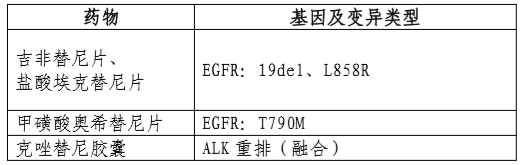 表2伴随诊断用途的基因变异类型及相应的靶向药物