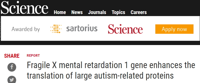 这张图展示了一个胚胎中枢神经系统因为缺乏Fmr1基因而出现发育缺陷的病例,左图是正常的腹神经索(ventral nerve cord)。(图片来源:Courtesy of Ethan Greenblatt and Allan Spradling) 进一步分析发现,Fmr1突变的卵细胞所表达的蛋白质数量大大减少。如果许多蛋白质完全缺失,就会与自闭症有关。受影响的蛋白质有一个共同点——构建我们身体的一些最大的蛋白质。即便是正常的卵细胞,包括受Fmr1影响的大蛋白在内,同样也不能有效地表达。 “我们认为,Fmr1是一种辅助物质,可以促进重要的大型蛋白的表达,而这些蛋白质对于卵细胞或者神经元而言是很难制造的。缺乏Fmr1,卵细胞就没有足够的特定大蛋白,从而过早地衰退。因为Fmr1在大脑中也很重要,某些与自闭症相关的大型蛋白的缺失可以解释脆性X综合症患者的自闭症样症状。” Greenblatt解释道。 下一步,他们将继续研究大型蛋白表达问题与衰老或者其他疾病的关联,例如阿尔兹海默症、肌萎缩侧索硬化(ALS)。 参考资料: Autism linked to egg cells' difficulty creating large proteins |