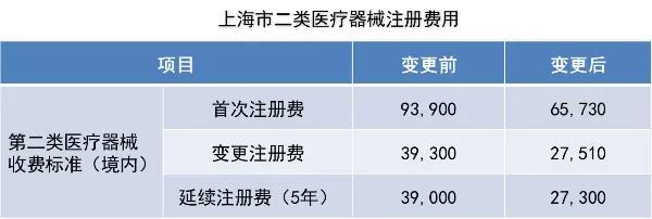 上海市 9月30日,上海市食品药品监督管理局对国产二类医疗器械注册收费做了调整,首次、变更及延续注册费用同样各减少30%