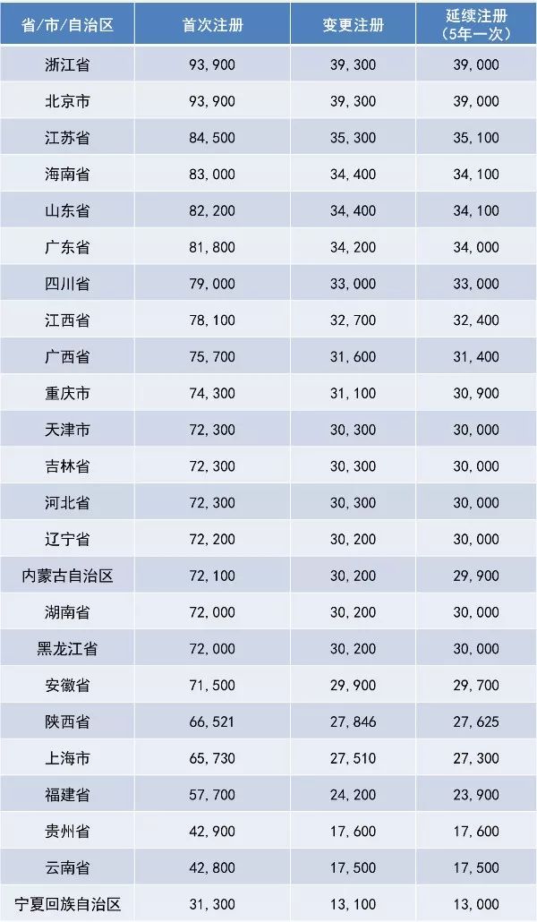 陕西省 2018年7月21日,陕西首先下调了注册收费标准