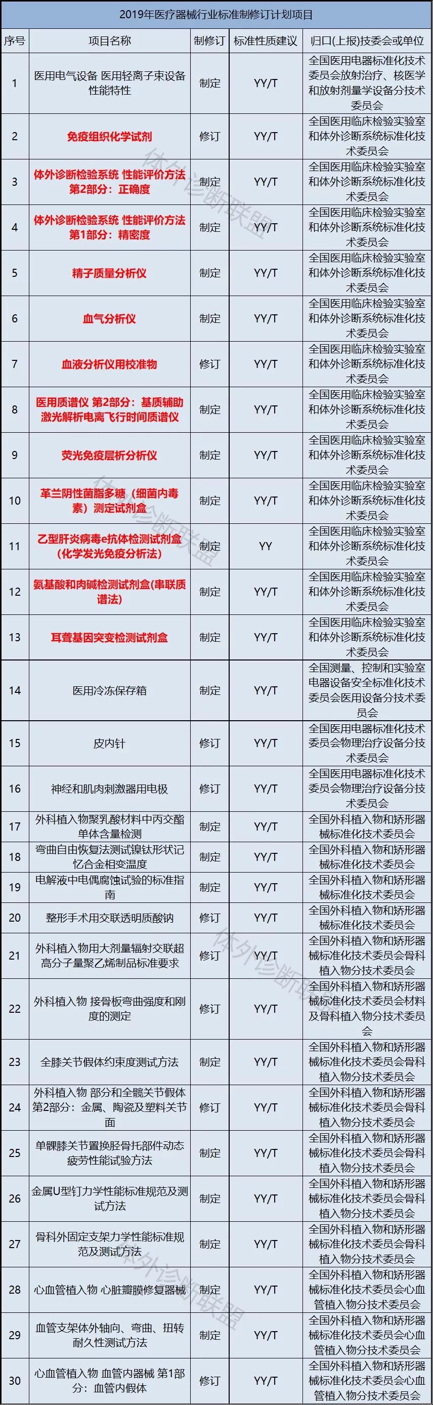 其中包含了12项体外诊断行业标准制修订计划项目。