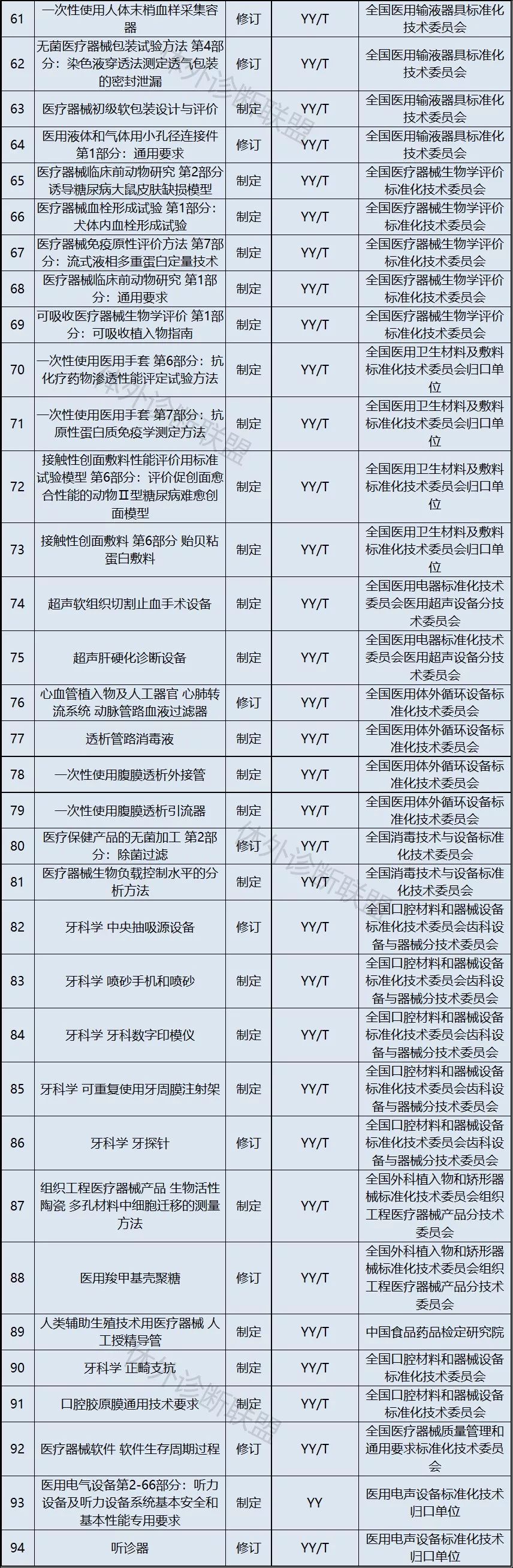 12月11日,国家药监局综合司发布了《关于2019年医疗器械行业标准制修订计划项目公示》,确定了94项医疗器械行业标准制修订计划项目。