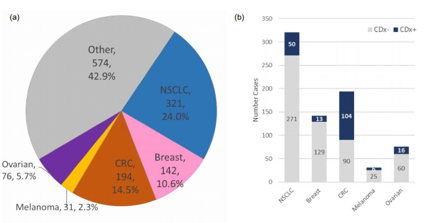 一个标志物要获批用于伴随诊断(CDx),必须对靶向治疗和免疫治疗的疗效具有非常好的预测价值,因此,任何一个用于检测这些标志物的新的检测手段需要经过严格的分析性和临床验证。基于NGS的全面基因组分析(CGP)平台FoundationOne CDx (F1CDx) ,在开发时就严格遵循FDA CDx适应症的规定。在2018年10月份召开的ESMO大会上,Foundation Medicine详实地公布了采用单基因伴随诊断检测方法,从临床和分析性验证两方面评估F1CDx平台。 方法 提取FFPE肿瘤组织的DNA,构建全基因组文库,采用Illumina HiSeq 4000平台进行测序。对324个测序基因数据进行分析,旨在发现碱基置换、插入或缺失、拷贝数变异、基因重排、微卫星不稳定性(MSI)和肿瘤突变负荷(TMB)。 图1. FoundationOne CDx(F1CDx)分析流程 结果 对F1CDx与单基因伴随诊断进行非劣效性验证,单基因伴随诊断包括EGFR cobas检测、BRAF突变检测、FISH和IHC检测ALK重排、FISH法检测ERBB2扩增和其他。评估两个检测方法的阳性一致性(PPA)和阴性一致性(NPA),总结见下表1。 表1. 对FDA获批的F1CDx采用单基因伴随诊断进行临床验证 备注:1. BRAF V600K和V600E二核苷酸检测的敏感性在cobas 检测中显著更低,尤其是在F1CDx可以检测MAF最低40%的二核苷酸变异时,因此导至两种检测方法之间NPA值较低。 2、F1CDx检测所有基因变异形式的分析敏感性(LoD) 下表2显示了F1CDx检测所有基因变异形式的分析敏感性(LoD)。 表2. F1CDx检测所有基因变异形式的分析敏感性(LoD) 3、F1CDx的分析精准性(不同检测方法和不同批试剂的可重复性) 表3. F1CDx的分析精准性 4、以TMB 10 mut/Mb作为cutoff值,F1CDx与全外显子测序的分析一致性 86例标本同时接受了F1CDx和全外显子检测,其中全外显子检测覆盖的编码外显子大小为34.7Mb。 表4. 以TMB 10 mut/Mb作为cutoff值,F1CDx与全外显子测序的分析一致性 图2. F1CDx TMB评分与全外显子测序TMB评分的分析一致性 5、接受F1CDx检测的肿瘤类型分类 接受F1CDx临床检测的患者,57%属于有CDx的肿瘤,其中NSCLC最常见,占24%,不同瘤种占比分布见下图3。不同瘤种患者中,拥有CDx变异的患者比例分布为:NSCLC(15.6%)、乳腺癌(9.2%)、结肠癌(53.6%)、黑色素瘤(19.3%)、卵巢癌(21.1%)。在结肠癌患者中,46.4%携带CDx变异的患者适合接受治疗。在乳腺癌患者中,CDx变异患者比例较低的原因可能是患者接受了FISH或IHC检测,因此未送检F1CDx检测。 图3. (a)接受F1CDx检测的肿瘤类型分类; (b)CDx阳性的患者数量 6、所有瘤种的常见变异基因 在所有瘤种的变异基因中,最常见的为TP53和CDKN2A变异,KRAS和APC变异在结直肠癌中更常见,见图4A;对MSI-H的24例患者进行单独分析,10例为结直肠癌,3例为子宫内膜癌。 图4. 所有瘤种的常见变异基因分布 7、TMB评分分布 大多数治疗中,TMB为3-4 mut/Mb,仅少数患者为高TMB,不同患者的TMB评分分布见下图5A;CDx阳性的不同瘤种患者的TMB评分分布见下图B。相比于CDx阳性的患者,仅在NSCLC患者中观察到CDx阴性患者的TMB显著更高。 图5. (a)所有患者中的TMB分布; (b) CDx阳性的不同瘤种患者的TMB评分 结论 Foundation Medicine研发了第一个基于NGS的全面伴随诊断检测平台——F1CDx,在实体瘤中进行了广泛的临床和分析性验证,并获得FDA批准用于伴随诊断。F1CDx平台目前已经在5个瘤种,8个伴随诊断适应症,包含17个靶向药物的伴随诊断方法中进行了临床验证。F1CDx在不同瘤种中的分析性平台已经建立。此外,研究还发现采用F1CDx检测和全外显子检测的TMB评分高度相关。最初验证的1338例临床患者覆盖不同的疾病类型,包含不同的CDx变异形式,以及MSI-H和TMB高的患者,这一研究证实F1CDx检测结果可以指导患者治疗。 专家点评 博士、博导 肺癌靶向治疗已经走过10余年历程,临床应用已经非常成熟了,随着越来越多治疗靶点的发现和靶向治疗药物的应用,我们已经走进精准肿瘤治疗时代。靶向治疗,顾名思义需要有精准的靶点,即携带某种基因变异的肿瘤患者才能接受这类治疗。目前获批的靶向治疗药物,在获得FDA批准上市时,通常都同时获批了相应的伴随诊断平台,如EGFR突变的Cobas检测、ALK重排的FISH分离探针等。但随着越来越多治疗靶点的发现以及靶向药物的应用,传统的单基因检测模式已经不能很好地满足临床需求,国内外指南均推荐应用多基因检测平台,同时覆盖多个已经获批的伴随诊断,从而实现高效检测。F1CDx是FDA和CMS批准的首个经过临床验证的NGS伴随诊断(CDx),这一平台在获批之前经过了严格的临床和分析性验证,证实了F1CDx平台的检测效能,可以作为临床多基因检测的首选之一。 Clinical and analytical validation of an FDA approved comprehensive genomic profiling (CGP) assay incorporating multiple companion diagnostics for targeted and immunotherapies. 2018 ESMO, 79P. |