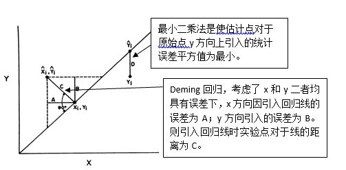 EP9-A3文件对检测程序比较数据的处理,除了有多个图示方法,便于实验室使用观察外,最后确定检测程序比较反映的不正确度大小,还是必须采用直线回归统计。但是,与以往的EP9文件不同的是,文件介绍了至少三种回归统计方法,如最小二乘法、Deming回归、和Passing-Bablok回归,还有加权的回归。实验室对这些回归方法的原理和具体使用较生疏。我在这篇微信中,简要地向大家做介绍。 一、直线回归统计意义(最小二乘法) 在临床实验室的日常实践中,用得最多的是最小二乘法的直线回归。这个统计方法的假设前提是:所有统计数据以x值为准,y值成为x的应变量。这样的前提使得出的直线回归,确实是问题。在进行方法学比较时,比较的x和y是互相独立的,不存在y依赖x。 欲了解两组有关联的实验数据间的数学关系,可以作回归统计。必须先作图,看趋势,再统计。具有直线趋势的,再作直线回归统计。 期望的直线,与所有的实验点具有最佳的配合。最小二乘法做法是:如前述,所有统计数据均以x值为准。因此被认为当x和y方法比较时,具有的差异是因为引入了y方法所致。在相同的xi下,有原先的实验点xi,yi,假设已经有了回归直线,则在xi下,在回归线上有回归统计估计的xi,yi点。因此在y值上实验得到的yi和统计估计的yi间的差异 被认为因引入回归统计所致。因此,使用回归统计引入的回归直线,应该使所有的回归直线引入的统计误差为最小,即 最小下配合的回归线,被称为最小二乘法。平方即二乘。最小二乘法也即使平方和为最小。具体的统计过程,在一般统计书均有介绍。求出回归直线的斜率: 求回归直线的截距: 得到该回归直线的等式为: 二、Deming回归 前述的最小二乘法的直线回归,它的统计要求前提,丧失了两个方法学比较的关系。它一切以x为准,统计用来观察y对于x的关系。如果二者有差异的话,均被认可是引入y所致。这样的比对失去了真实含义!不要否认,x和y方法对相同一组病人标本检测时,均有误差! 关于Deming回归,以图示表示。 在实际的Deming回归统计中,还必须考虑x和y方法对一组病人样品的检测值的分布是否一致,即要考虑每组x值的标准差Sx和y值的标准差Sy是否接近一致。还要考虑两个方法自身的重复精密度是否比较一致等。有关计算,各位可以寻找统计书籍或软件进一步去了解。为计算Deming的斜率,假定x和y在整个检测范围内具有恒定的不精密度,误差均为正态分布。若x和y的检测误差比率可以估计,当x为自变量时: (经过初步的计算,知道在计算Deming回归斜率时,λ因子是关键。若λ趋近1,则U很小,斜率即接近1。因此,今后要用Deming回归统计时,一定要有不同样品的分析物的浓度下,2个比较方法的精密度数据,这样,才能完成Deming统计。) 可惜,国内外的统计书上,没有介绍Deming回归的统计方法。因此,所有的介绍只能依靠杂志和有关公司的介绍。另外,CLSI的EP9-A3文件的附录里,有详细介绍Deming回归的内容。需要了解的可参阅这部分内容。 Deming回归只能做一个概要的介绍,它的计算有些复杂,需要认真学习。今后,在工作中需要使用Deming回归统计时,再做深入讨论。 三、Passing-Bablok回归 Passing和Bablok形成了方法比较的非参数检验。它不需要关于检测值分布的前提。它也能够检查非线性,在对于离群值上非常稳健。在做法上,计算任何两个实验结果点间所有可能的斜率。 每条连接线的斜率为: 一共有2n条任何两点链接的线。所有连线的斜率为Sij。这些斜率的中位数|b=med{Sij}为Passing-Bablok的回归线斜率。然后再估计出所有对于回归线的各个实验点的所有残余yi-bxi,回归线的截距 a = med{yi-bxi}(为所有残余的中位数。) |