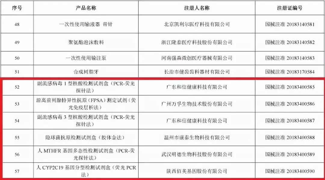 2018年12月,国家药品监督管理局共批准注册医疗器械产品101个。其中,境内第三类医疗器械产品66个,进口第三类医疗器械产品17个,进口第二类医疗器械产品18个(具体产品见附件)。