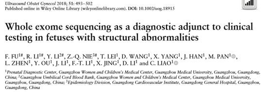 大部分结构畸形的原因并不明确,随着测序技术的发展,全外显子测序已被证明是产后患者寻找病因的强大工具,平均诊断阳性率达到25%左右。这种技术也被逐步地应用到产前,Carss等对30例结构畸形、芯片检测阴性的胎儿进行全外显子测序,10%的患者找到致病原因。贝勒医学院杨亚平教授诊断出来自终止妊娠的11个神经系统异常胎儿中的6个,证明使用WES提高了诊断率。然而这些产前WES研究的样本量都太少,使用WES评估更大的样本量不仅可以提供更准确的诊断率,还可以提供其他信息,例如如何根据表型严重程度对亚组进行分类,这有助于鉴定致病变异。