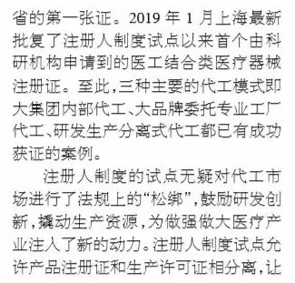 2月22日,中国政府网发布《国务院关于全面推进北京市服务也扩大开放综合试点工作方案的批复》,方案显示:开展医疗器械注册人制度试点,允许北京市医疗器械注册人委托京冀地区医疗器械生产医疗器械,助推“注册+生产”跨区产业链发展。 截止目前,医疗器械注册人制度试点已在上海、广东和天津展开,而且试点范围有进一步扩大之势。除北京外,江苏、浙江、山东、河北等医疗器械聚集地区也都在跃跃欲试并且尝试邻近省份联合试点。 ▍医械代工已成为全球趋势 全球经济一体化进程的不断推进,代工模式日益成为全球化企业开发产品、降低成本、拓展市场、获取利润的新途径 ▍委托生产法规限制创新 现行的委托生产法规不允许委托生产研发样品,导至具有良好市场前景的创新性医疗器械无法通过当前的委托快速上市。 ▍专业的人干专业的事 三种主要的代工模式即大集团内部代工、大品牌委托专业工厂代工、研发生产分离式代工都已有成功获证的案例。