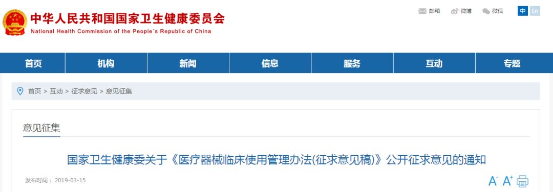 今日,国家卫生与健康委员会发布医疗器械临床使用管理办法(征求意见稿),如下: 医疗器械临床使用管理办法 (征求意见稿)