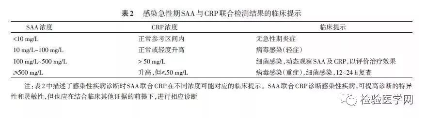 建议7:在进行感染性疾病诊断时,应结合临床对可引起SAA升高的非感染性疾病进行鉴别,以区别患者非感染性疾病的急性期。 结 语 目前,临床常用的炎症标志物有多种,在感染性疾病的诊断、分层、治疗监测及预后评价中发挥重要作用,尤其对指导抗生素的合理使用有很大的帮助。SAA作为血清学炎症标志物,在机体急性感染过程中发挥重要作用,与现有的血清学标志物相比有明显的优势。SAA在感染急性期3~6h内迅速升高,并且在疾病的恢复期迅速下降;在病毒感染性疾病中,SAA显著升高,CRP不升高;在细菌感染性疾病中,SAA的敏感性高于CRP,上升早、幅度大。 随着对SAA蛋白结构、生物活性的了解、检测技术的不断成熟,作为一个近期以炎症标志物应用于临床的检测指标,SAA对感染性疾病的早期诊断、疾病分层、治疗监测、预后评价等一定会发挥重要的价值。 |