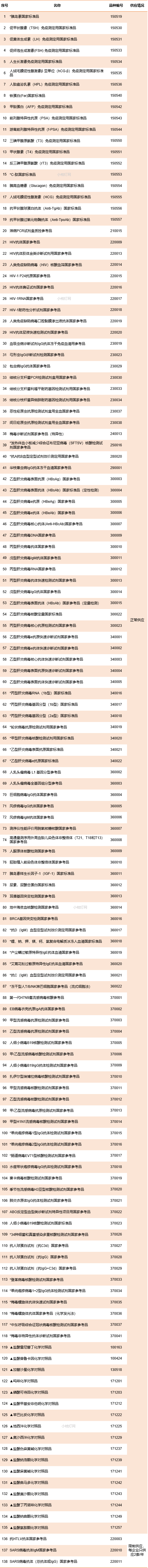 1. *标识品种为本期目录新增体外诊断试剂标准物质。