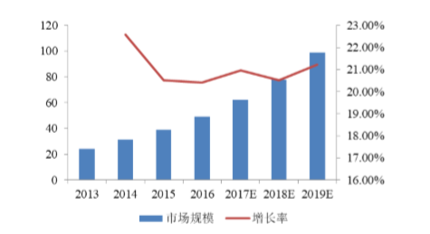 随着精准医学的发展,速度更快、灵敏度更高、特异性更强的分子诊断迎来了黄金发展期,市场规模增长率维持在20%-25%的高速发展。2017年中国分子诊断市场规模约为60亿元,预计2019年将达到百亿元级别。