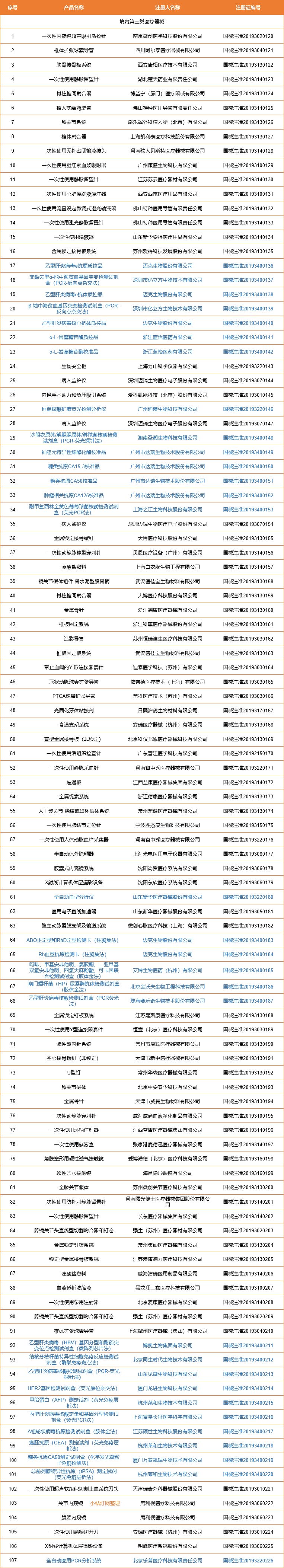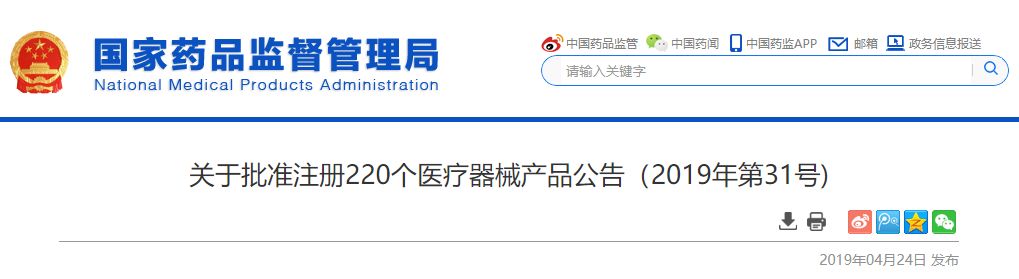 2019年3月,国家药品监督管理局共批准注册医疗器械产品220个。其中,境内第三类医疗器械产品107个,进口第三类医疗器械产品36个,进口第二类医疗器械产品76个,港澳台医疗器械产品1个(具体产品见下表,包含63项体外诊断产品)。 |