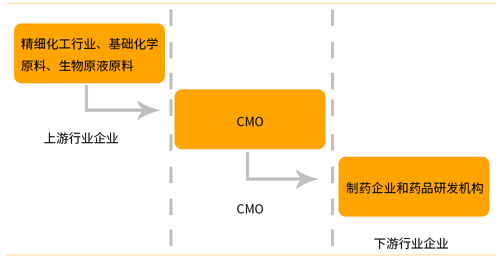 《MAH制度对CRO行业有何影响?》中提及,MAH制度核心是将药品上市许可与药品生产许可分离,让医药市场各要素灵活流动,可以提高CRO行业集中度,加快CRO的发展,从而提高CRO的整体竞争力。而CMO行业作为医药外包行业的中下游环节,MAH制度对其有更为直接的促进影响。 一、CMO行业的主要特点 1. CMO概述 CMO主要是接受制药公司的委托,提供产品生产时所需要的工艺开发、配方开发、临床试验用药、化学或生物合成的原料药生产、中间体制造和制剂生产(如粉剂、针剂),以及包装等服务。 从产业链上,CMO上游为精细化工行业或生物试剂行业,主要将化学原料等生产成中间体或制剂及生物药原料,服务于下游制药公司。产能过剩、过度竞争所引起的新机会、新市场的渴望与需求为国际化分工带来机遇。 图1 CMO 企业上下游产业关系 2. CMO和CRO的关系 CMO 、医药研发外包组织(CRO)和医药销售外包组织(CSO) 都隶属于医药外包组织,只是各自运营的环节不同。 在新药研发产业链上的分工差异:CRO企业侧重于研发能力的发展,是技术密集型的医药外包企业;CMO企业则具有更高的准入门槛,高超的工艺技能与较大的资产规模皆是其占领行业市场的必备条件,是技术和资本密集型的医药外包企业。 中国CMO另一个特点是在CRO作为先导下孕育而生。CRO和CMO一样,相对于企业内部完成研发生产等环节来说,其主要优势在于可以节省研发成本,缩短研发周期,并充分利用资源,从而提高研发效率。 图2 CRO和CMO 相互之间的关系示意图