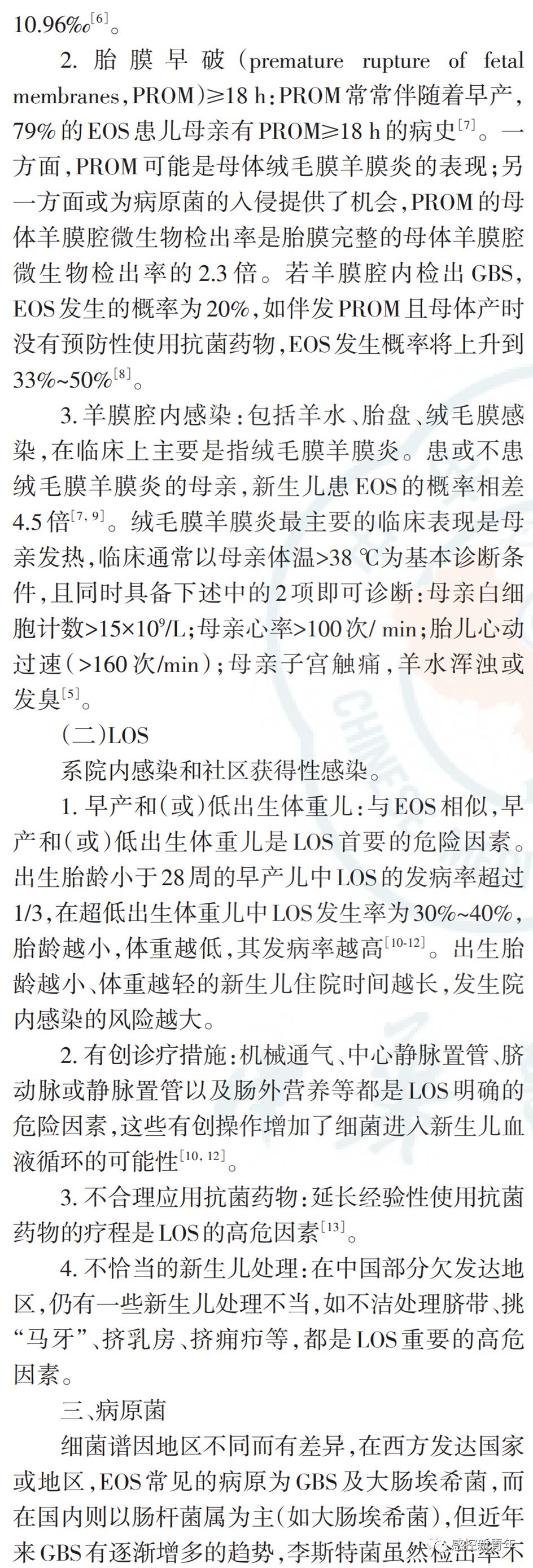 作者丨中华医学会儿科学分会新生儿学组 中国医师协会新生儿科医师分会感染专业委员会 来源丨中华儿科杂志, 2019,57(4) : 252-257. DOI丨 10.3760/cma.j.issn.0578-1310.2019.04.005 新生儿败血症诊断及治疗专家共识(2019年版) 新生儿败血症仍然是威胁新生儿生命的重大疾病,其在存活新生儿中的发病率为4.5‰~9.7‰。1986年及2003年中华医学会儿科学分会新生儿学组分别制定"新生儿败血症诊断标准初步方案""新生儿败血症诊疗方案"。近年来,病原谱发生变化,如B族链球菌(group B streptococcus,GBS)在早发败血症(early-onset sepsis,EOS)中检出有增高趋势;国内外专家对非特异性检查在新生儿败血症中指导价值的认识有所改变;在抗菌药物使用的观念、时机上也发生了变化。因此,中华医学会儿科学分会新生儿学组及中国医师协会新生儿科医师分会感染专业委员会于2016年5月成立共识制定工作组,历经3年,全面检索并评价相关文献,并经过多轮专家函审及会议讨论,结合我国实际国情制定"新生儿败血症诊断及治疗专家共识(2019版)"。本共识旨在进一步规范新生儿败血症的诊断及治疗,帮助新生儿科医生严格掌握抗菌药物使用及停用指征。 |