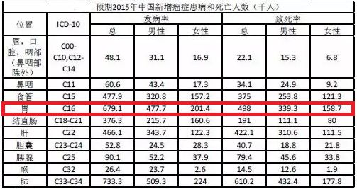 我国是胃癌高发国家,根据2015年中国癌症数据报告,我国每年胃癌预估新发病例67.9万例,死亡病例49.8万例,其发病率和病死率在恶性肿瘤中均高居第2位,我国胃癌新发病例和死亡病例约占全球42.6%和45.0%。