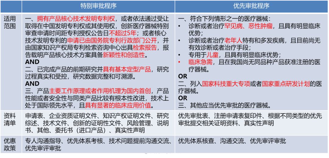 法规框架、注册流程 CFDA医疗器械法规体系 规范性文件 关于实施《医疗器械注册管理办法》和《体外诊断试剂注册管理办法》有关事项的通知(食药监械管〔2014〕144号) 国家药品监督管理局关于公布新修订免于进行临床试验医疗器械目录的通告(2018年第94号) 关于公布医疗器械注册申报资料要求和批准证明文件格式的公告(2014年第43号) 关于公布体外诊断试剂注册申报资料要求和批准证明文件格式的公告(2014年第44号) 关于医疗器械(含体外诊断试剂)注册申报有关问题的公告(第129号) 国家食品药品监督管理总局关于发布医疗器械生产质量管理规范的公告(2014年64号) 医疗器械全生命周期法规管理 法规贯穿于产品的整个生命周期 监管存在于产品的每一个阶段 全过程无缝隙的监管体系 医疗器械分类、注册 医疗器械注册流程 根据产品不同,具体周期有较大差异。 质量管理体系 •主要阶段 –体系策划 –文件编写 –体系运行实施 –内审&管审 –体系审核 –整改 •重点: –时间 –设计开发 –验证确认 产品检验 需要注意的几个问题: •技术要求应为设计开发的输出,涵盖产品的各项性能、安全指标; •技术要求的各项指标中,除特殊情况外,企业应可以进行自检/委托检验; •检验应选择具有该类产品检验资质的医疗器械检验机构; •除注册检验外,还应考虑生物相容性检测等其他测试。 医疗器械产品的要求 安全性 •不会损害医疗环境、患者安全、使用者及他人的安全和健康; •使用时潜在风险与患者受益相比较可以接受,并具有高水平的健康和安全保护方法 有效性 •在规定使用条件下应当达到其预期性能,满足适用范围要求。 风险分析、产品检验、生产质量管理体系、临床试验……其目的都是为了保障产品的安全性和有效性。 以多参数监护仪为例: 安全性 –标准要求 •安全:GB 9706.1-2007、 GB 9706.25-2005 •电磁兼容:YY 0505-2012 •产品:YY 1079-2008、 YY 0784-2010、 YY 0785-2010 •报警:YY 0709-2009 –安全防护 •心电防除颤 •防水等级IPX4 •生物相容性(与人体皮肤表面接触) •网络安全 有效性 –标准要求 •产品:YY 1079-2008、 YY 0784-2010、 YY 0785-2010 –性能指标 •准确性:心电、血氧、血压、体温监护 •分析功能:心电有心律失常分析等 •使用方面:可用性 •寿命测试、包装测试等 •…… 临床评价 豁免目录 1、列入免于进行临床试验目录的产品 提交申报产品相关信息与《目录》所述内容的对比资料; 提交申报产品与《目录》中已获准境内注册医疗器械的对比说明 同品种对比 2、通过同品种医疗器械临床数据进行分析 临床试验 注册申报 注册申报资料 软件研究 含有软件的产品,应当提供一份单独的医疗器械软件描述文档; 内容包括基本信息、实现过程和核心算法,详尽程度取决于软件的安全性级别和复杂程度; 应当出具关于软件版本命名规则的声明,明确软件版本的全部字段及字段含义,确定软件的完整版本和发行所用的标识版本。 具有网络连接功能以进行电子数据交换或远程控制,或采用存储媒介以进行电子数据交换,应当提供一份单独的网络安全描述文档。 产品说明书和最小销售单元的标签样稿 (一)产品名称、型号、规格; (二)注册人或者备案人的名称、住所、联系方式及售后服务单位,进口医疗器械还应当载明代理人的名称、住所及联系方式; (三)生产企业的名称、住所、生产地址、联系方式及生产许可证编号或者生产备案凭证编号,委托生产的还应当标注受托企业的名称、住所、生产地址、生产许可证编号或者生产备案凭证编号; (四)医疗器械注册证编号或者备案凭证编号; (五)产品技术要求的编号; (六)产品性能、主要结构组成或者成分、适用范围; (七)禁忌症、注意事项、警示以及提示的内容; (八)安装和使用说明或者图示,由消费者个人自行使用的医疗器械还应当具有安全使用的特别说明; (九)产品维护和保养方法,特殊储存、运输条件、方法; (十)生产日期,使用期限或者失效日期; (十一)配件清单,包括配件、附属品、损耗品更换周期以及更换方法的说明等; (十二)医疗器械标签所用的图形、符号、缩写等内容的解释; (十三)说明书的编制或者修订日期; (十四)其他应当标注的内容。 产品标签(有源产品) 未来发展趋势 医疗器械法规监管历程 创新特别审批和优先审批 逐步推行的医疗器械上市许可持有人政策 医疗器械注册人制度,是指符合条件的医疗器械注册申请人可以单独申请医疗器械注册证,然后委托给有资质和生产能力的生产企业(以下简称受托生产企业)生产,从而实现医疗器械产品注册和生产许可主体的可分离。 制度起源 2015-08 《国务院关于改革药品医疗器械审评审批制度的意见》,提出开展药品上市许可持有人制度试点。 药品试点 2016-06 《国务院办公厅关于印发药品上市许可持有人制度试点方案的通知》,明确药品试点要求。 上海先行 2017-03 《关于印发全面深化中国(上海)自由贸易试验区改革开放方案的通知》,允许自贸试验区内医疗器械注册申请人委托上海市医疗器械生产企业生产产品。 政策明朗 2017-10 《关于深化审评审批制度改革鼓励药品医疗器械创新的意见》,提出允许医疗器械研发机构和科研人员申请医疗器械上市许可。 第一张证书 2018-02 医疗器械注册人制度框架下的第一张注册证获批,为上海远心医疗