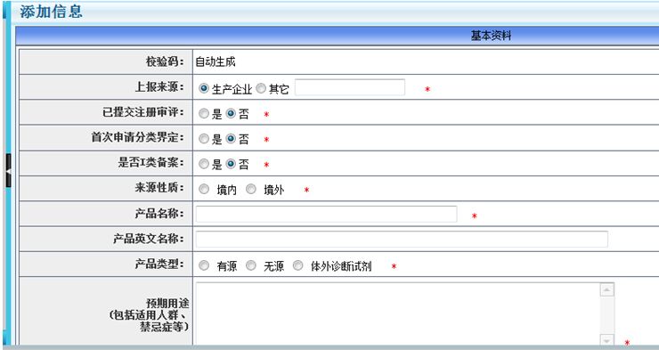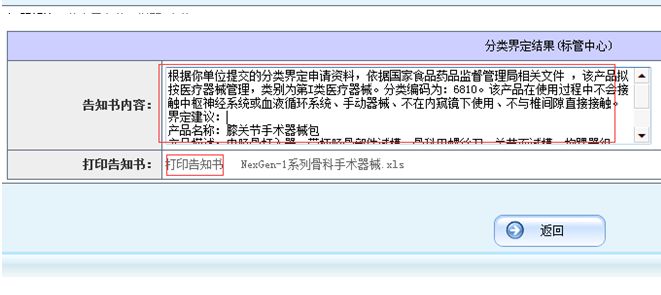 第四步 打印登记表。如打印不成功,可查看打印帮助文件。 第五步 提交申请。境内产品上报提交到所属省局。境外或港澳台产品上报后,到达标管中心。 注意事项 可查询邮件确认是否成功上报。 第六步 邮寄纸质资料。境外及港澳台产品,请把资料邮寄到标管中心。境内产品,请把纸质资料邮寄到省局。 第七步 查询状态和邮件。申请人可登陆系统查询纸质资料接收情况;如须补充资料或修改表单,请根据要求补充并重新提交。 注意事项 补充资料时间如超过45天,申请将暂时关闭。 第八步 纸质资料和补充资料接收后,申请人可查询办理情况。 省局办理后,将有省局回复和上报标管中心两种状态。省局回复,可直接点击查看并下载告知书;上报标管中心后,将由标管中心或国家局回复,请继续关注状态和邮件,相关部门回复后可查看并下载告知书。 注意事项 告知书中常常会给出建议规范的产品名称、预期用途和结构组成,请申请人关注。 常见问题 1、分类界定需要多长时间? 不同产品和不同流程需要的时间不同。取决于产品的复杂程度和各个部门的时间进度。时间从一个月到一年及以上不等。 2、纸质资料邮寄地址是什么? 境外产品请邮寄至标管中心(北京);境内产品请邮寄至省局或省局委托的下级部门(江苏省内一式两份邮寄至审评中心),如已上报标管中心,补充资料请邮寄至标管中心(关注邮件通知)。 3、分类的依据都有哪些? 对于分类目录中未列出的产品,首先根据医疗器械的定义并参考分类目录中的相关产品判断是否作为医疗器械或是否单独注册;再根据产品与人体接触的性质、时间以及产品的风险依据医疗器械分类规则判别产品的类别,同时可参考以往分类界定结果进行判定。 4、哪些组分会界定为药物? 根据产品组分与人体接触的性质、是否具有药理作用、是否会被人体吸收,不同的产品会根据具体情况界定为器械、药械或不作器械。常见考虑作为药物组分的有天然植物提取物、具有抗菌作用的组分、具有抗氧化作用的组分等。 5、基因文库用试剂盒的管理类别是什么? 不同的试剂盒组成和用途将视情况界定产品的类别。一般情况下,具有完整的文库构建功能的产品建议作为三类管理;如需与其它试剂(如引物)配合使用,产品本身不具有建库功能,建议作为一类管理或视组分情况而定;如仅用于上机前样本浓度调节,不建议单独注册或视组分情况而定。 |