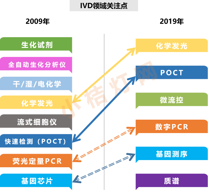可以看出历经十年的发展,IVD领域的关注点发生了巨大的变化,但仍有一些领域始终吸引着业内人士的目光。