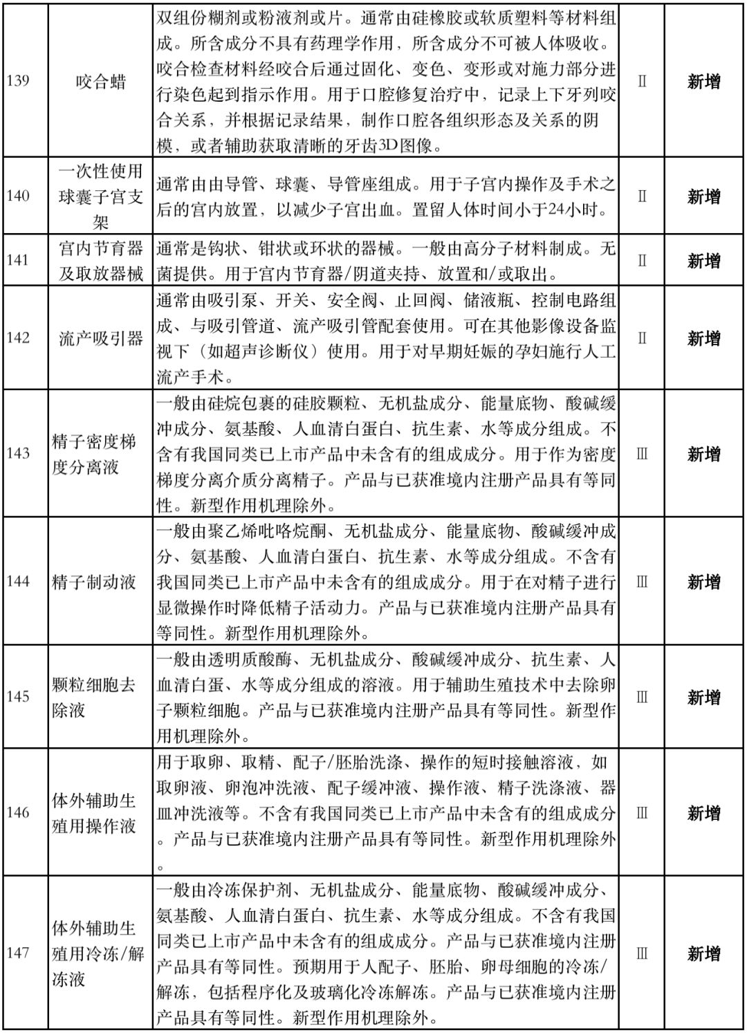 8月1日,国家药监局器审中心发布《免于进行临床试验医疗器械目录(2019年修订稿征求意见稿)》,共996种医疗器械和420种体外诊断试剂免于进行临床试验。 与2018版相比,2019版《豁免目录(意见稿)》新增142种医疗器械和27种体外诊断试剂,还对19种医疗器械扩大了豁免范围或对描述进行了修订,新增的142种医疗器械包括102种II类和40种III类医疗器械。