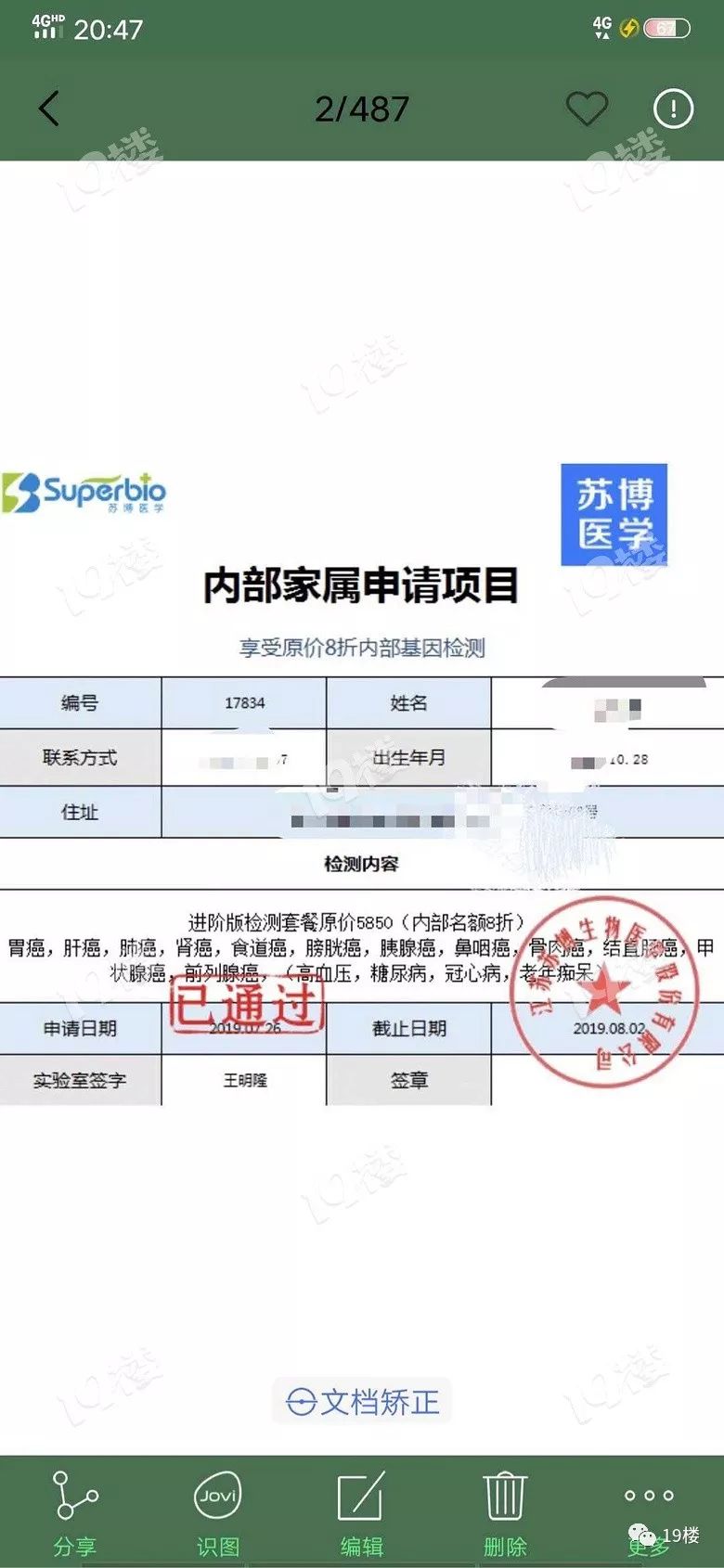 19楼网友爆料 自己追求妹子疑似遭遇新骗局 ▽ 我一个男性朋友,单身,最近喜欢妹纸。 据他说妹子是一个健身好几年,家境殷实的7分女子。但是追求她,一直模棱两可。 某次聊天中妹子说他们单位有一个基因检测,家属可以打八折,帮我朋友报名了。我朋友其实不想做的,但是妹子非常热心,帮他钱交了。朋友是个老实巴交的男子,也有点大男子主义,还是把钱主动给了妹纸。近5k。我听说过这个,但是公立医院没有这个项目,不建议做,朋友不听。 然后妹子还送水果给帮忙的主任,发给我朋友,我说你们没有确定关系,她这么殷勤,匪夷所思呀。 还非常正派的退过红包。 之后套路来了,做检查的主任告诉妹纸,我朋友检查出来不好,需要进一步昂贵检查,我朋友这个时候已经意识到可能是套路了。拒绝做,妹子又要使出主动付钱的戏码,我朋友态度坚决,不用,妹子真面目就出来了,拿不和他聊天威胁他。 套路呀。 反正我是一直劝我朋友不要去做的,之前无事献殷情,我还各种举例,还被说我腹黑,平时咖啡都不舍得喝,这次被骗了五千多。 朋友的心理路程,好在最后收手了。这个妹纸也是毛躁,拒绝马上就露出真面目,还拿不发任何一个字威胁。 追求妹子被要求做基因检测 网友们都觉得这是明显的套路 ▽ 网友热评: @天天天蓝:这真的是被妹子蒙蔽了双眼,明显的套路。 @金金:看得我笑死,小妹妹这个演技我给满分。 @欧文:和主任一唱一和的真是不得了。 @王篮子:只有我一个人觉得这个什么基因测试一点都不靠谱吗? 刮一刮口中的唾液,寄送出去,半个月左右就能从手机上获知自己的基因信息和身体秘密。 随着技术的进步以及成本下降,基因检测服务走进普通消费者的视野。那么所谓的基因检测真的靠谱吗? 实际上,据医药调研机构统计,截至2016年底,国内已有233家公司从事基因测序相关服务,至今超过一百家公司号称为普通消费者提供基因检测服务,价格从几十元到上万元不等。