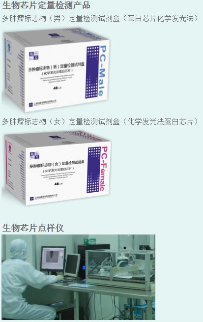 国内研究该技术比较出名的有上海裕隆生物科技有限公司、上海铭源数康生物芯片有限公司和湖州数康生物科技有限公司。裕隆生物具有强大的多种生物芯片(蛋白芯片、基因芯片、液相芯片、抗体芯片、组织芯片、磁芯片等)开发能力,自主创建了生物芯片载体处理技术、点样技术、标记技术、洗涤技术、检测技术等,并开发了系列化产品。下图是裕隆生物的产品部分截图。