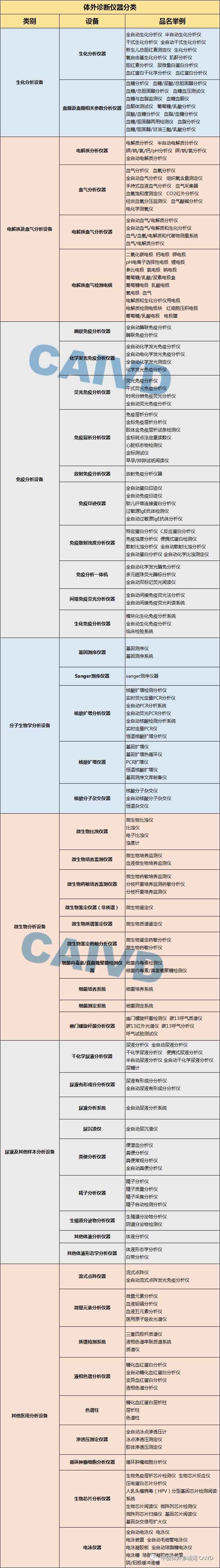 体外诊断,即IVD(In Vitro Diagnosis),是指在人体之外,通过对人体样本(血液、体液、组织等)进行检测而获取临床诊断信息,进而判断疾病或机体功能的产品和服务。检测过程中所需要的仪器、试剂、耗材组成了IVD系统, 而从事这些仪器、试剂、耗材研发、生产和营销的企业就形成了IVD产业。随着社会的发展,对IVD行业也提出更高的要求,既要做到快速检测、又要做到检验测定结果精准为临床诊断、治疗争取宝贵的时间。 体外诊断仪器主要分为:生化分析设备、电解质及血气分析设备、免疫分析设备、分子生物学分析设备、微生物分析设备、尿液及其他样本分析设备、其他医用分析设备、血液学分析设备、采样设备和器具、形态学分析前样本处理设备、样本分离设备、培养与孵育设备、检验及其他辅助设备、体外诊断类软件等。 小编整理了检验科常用设备名录,以供参考: 来源:中国体外诊断网CAIVD |