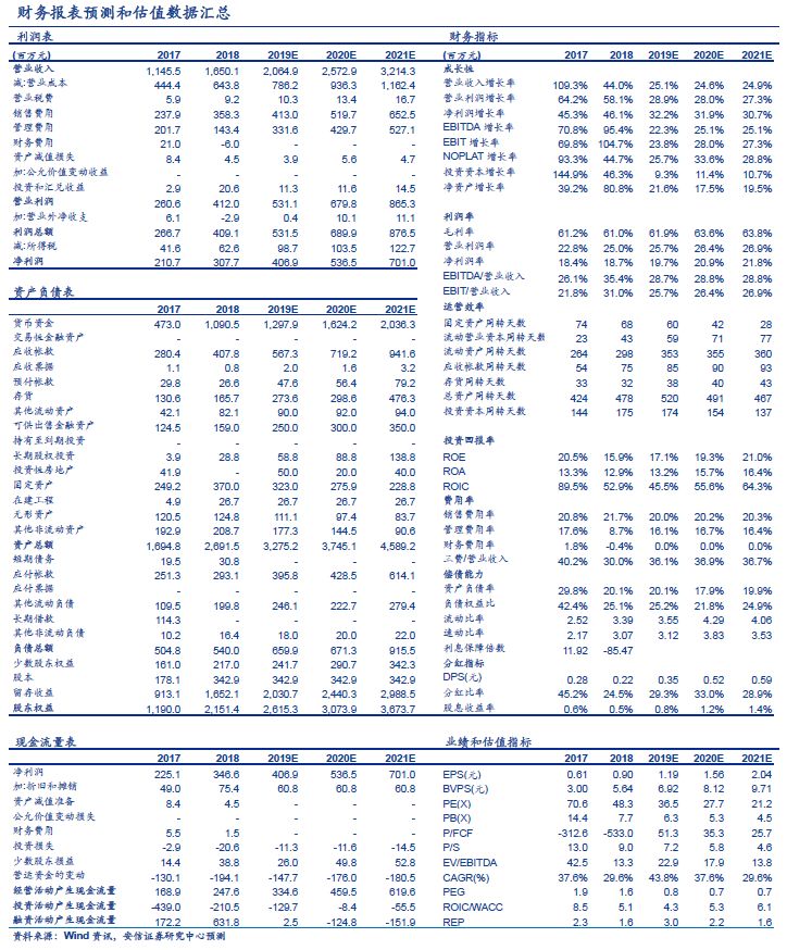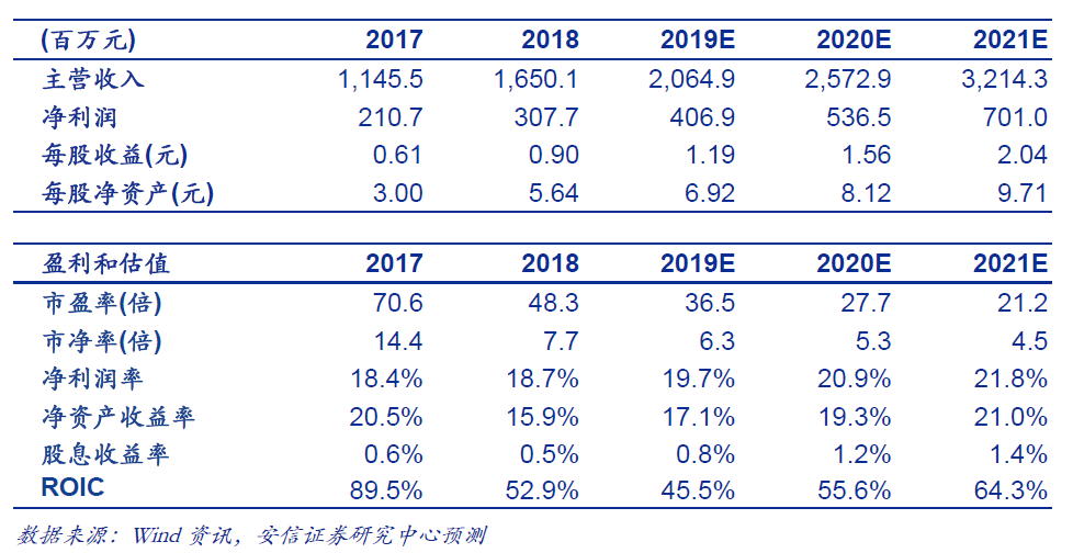 核心观点 ■事件:公司19年半年报发布,扣非归母净利润同比增长30.1%。公司19年上半年实现营业收入9.68亿元,同比增长20.89%;实现归母净利润2.07亿元,同比增长27.4%;实现扣非归母净利润1.93亿元,同比增长30.1%;实现经营活动现金流量净额9380万元,同比增长107.88%,现金流得到显著改善,主要系公司加快了终端回款。单季度来看,公司19年二季度实现营业收入5.15亿元,同比增长15.5%;实现归母净利润1.34亿元,同比增长25.3%;实现扣非归母净利润1.24亿元,同比增长25.2%。公司利润端增速高于收入端,得益于毛利率的提升。19年上半年,公司整体毛利率达65.18%,同比提升4.5%,主要系高毛利率(84%)的慢病检测业务收入占比进一步提升(约占整体营收的30%)。 ■慢病检测保持高速增长,是公司业绩的核心驱动力之一。报告期内,公司实现慢病管理检测收入2.86亿元,较上年同期大幅增长55.96%,荧光免疫平台仍然是慢病管理业务线的主要收入来源。(1)存量推广:公司慢病检测采取的市场策略是:以特色项目为切入口,以高值项目促增长,以普通项目完善项目覆盖度,针对疾病谱和使用场景制定产品组合策略,围绕临床应用的具体场景,打造诸如胸痛中心、卒中中心、基层医疗等不同项目,推进市场造势和营销导入。1)国内方面:公司对规模化渠道联合经营,扩大合作,对小型渠道加强培训和学术推广,协同开发。2)海外方面:着力推进免疫荧光平台产品在中东、亚洲、东欧等地的导入和推广,荧光产品占海外收入的比例逐年提升。现阶段,化学发光、电化学、干式生化等新平台尚处于起步阶段。(2)新品导入:重点推进新品的市场验证及量产准备工作;重视学术推广,推进与当地经销商的深度营销;根据新品的受众市场积极拓展新渠道。从上半年的情况来看,电化学平台的血气和血凝产品进度相对较快,在标杆三甲医院的装机、推广方面有较大突破。 ■炎症标志物项目覆盖度国内领先,有望在新品的带动下实现新一轮的增长。报告期内,炎症因子及传染病检测产品线合计实现收入2.8亿元,较上年同期增长38.30%。2019年上半年,公司在原有的CRP和PCT基础上导入了SAA和IL-6。传染病检测产品主要基于免疫胶体金平台,包括流感、艾滋、梅毒、病毒性肝炎、疟疾、幽门螺旋杆菌等定性检测产品。其中,流感产品在2019年上半年增长强劲。公司在流感检测领域,品规最全,质量优异,渠道成熟,处于行业领先地位。 ■毒检业务受到美国市场波动的影响,上半年同比增速有所下滑,改制团队+美国外市场发力有望改善下半年业绩。报告期内,公司实现毒品(药物滥用)检测收入8,566万元,较上年同期下滑了20.89%。毒检业务线的同期下滑主要由美国毒检业务在2019年上半年的波动所致。从行业角度来说,美国毒检市场相对成熟,竞争格局较为稳定,行业整体增速较慢,对产品升级及业务模式创新的要求越来越高。从今年二季度开始,公司积极对美国毒检业务进行调整,在组织化建设方面,加强销售人员分层级的队伍建设以及客服人员按区域的配置;在销售策略方面,加强对客户的分级管理,制定更有针对性的销售激励措施;在业务形态上,从毒检产品提供商向毒检整体解决方案提供商转型。公司预计下半年美国毒检业务与上半年相比会有明显的改善。为了抓取更多的业务发展机会,公司上半年在中国、欧洲、亚洲、非洲等地扩展新的毒检业务。在毛发毒检、唾液毒检等产品上有较大突破。 ■优生优育业务逐渐由欧洲渗透到更多的国家,未来增长主要依赖增量市场的开拓。报告期内,公司实现优生优育检测收入7,435万元,去年同期相比增长11.14%。区域分布来看,中国区域优生优育业务增长最快,其销售规模已接近该条业务线的一半。公司在天猫、京东等互联网平台开设官方自营旗舰店,销售额逐年攀升,在排卵检测等产品上优势明显,品牌度在天猫同类品牌中稳居前三。此外,欧洲区域已演变为存量市场,产品结构亟待升级。而美洲、亚洲、非洲等发展中国家和区域,优生优育业务扩张迅速,收入占比有明显的提高。在产品结构改善方面,公司近年推出针对临床院线的基于免疫荧光平台的β-HCG、FSH、LH等检测项目,在国内国外同步推广,收入规模增长明显。 ■公司通过自主创新+外延并购,不断拓展产品布局进军新领域,为实现长期良性发展奠定基础。 2019年上半年,公司研发费用达7138万元,同比增长约28%,约占公司当期营业收入的7%。(1)专利方面:截至2019年中,公司拥有专利207项,其中发明专利49项,实用新型专利106项,外观设计52项。(2)注册证方面:2019年上半年,公司获得产品注册证合计15个,其中新增国内产品注册证12个,欧盟CE产品注册证3个。截止2019年中,公司累计获得产品注册证合计406个,其中国内产品注册证174个,美国FDA产品注册证70个,欧盟CE产品注册证159个,加拿大MDALL产品注册证3个。在中国市场,经过持续高强度研发投入和技术攻关,2019年上半年共取得化学发光注册证1个、电化学注册证3个、干式生化注册证1个,荧光定量注册证7个。(3)研发项目:2019年上半年,公司累计有8项产品完成结题,包括金标平台的7个项目以及电化学平台的1个项目。公司目前在研的重要项目约40项,其中免疫荧光平台14项,电化学平台6项,化学发光平台7项,金标平台4项,生化平台9项。(4)外延布局方面:公司与美国iCubate、比利时Biocartis的战略合作稳步推进,相继成立万孚倍特和万孚
